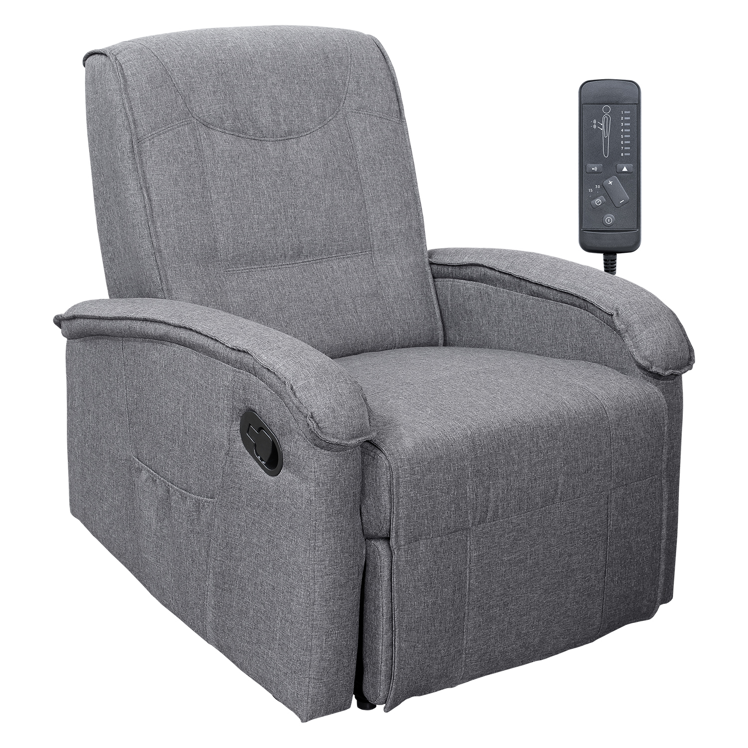 textilní potah, barevné provedení světle šedá elektrické ovládání, 8 masážních programů, 2 stupně intenzity nastavení oblasti masáže (zádová nebo bede...