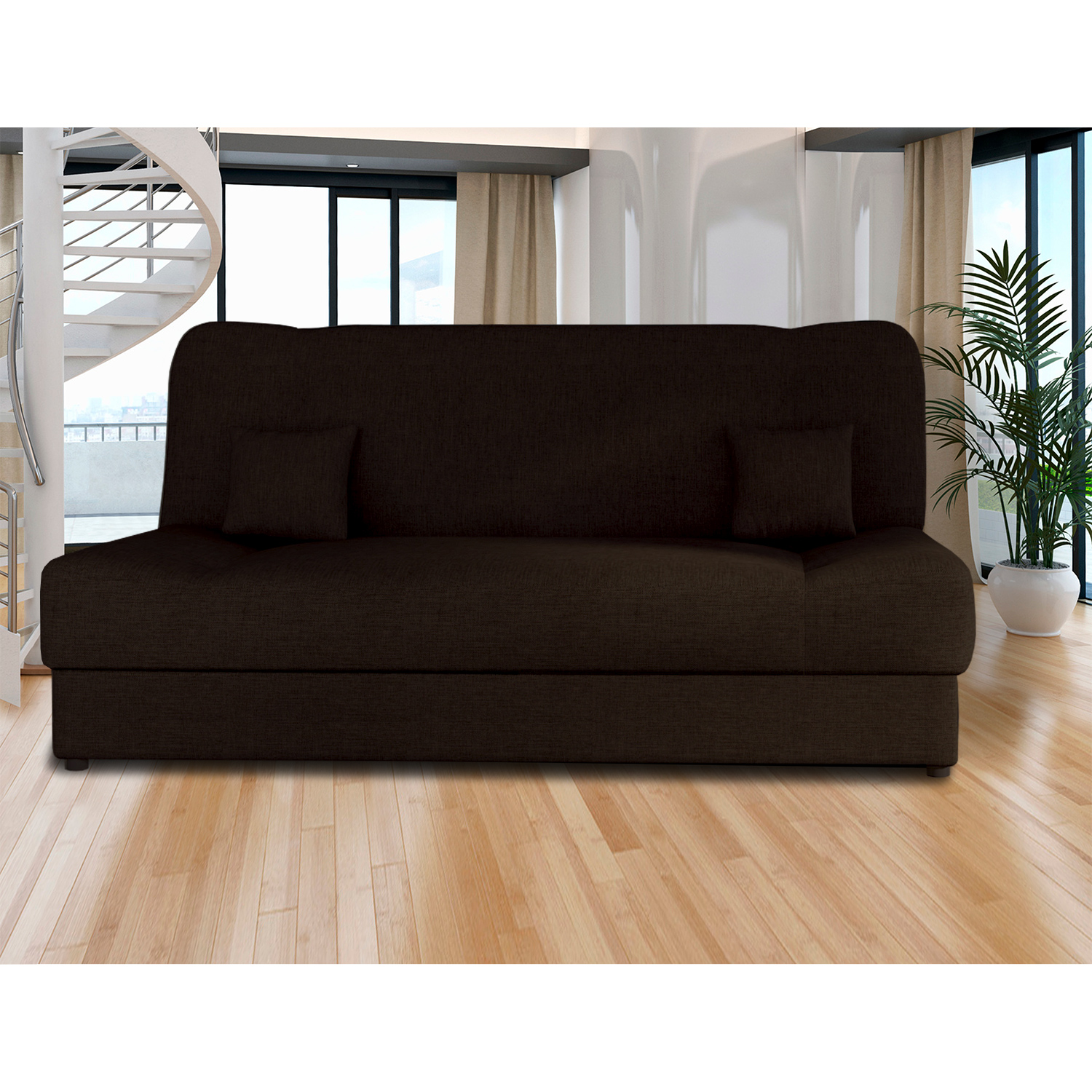 textilní potah, barevné provedení hnědá jádro z vlnité pružiny, výška sedu 40 cm, hloubka sedu 55 cm, rozměr rozložené 190 × 120 cm rozkládací s úložn...