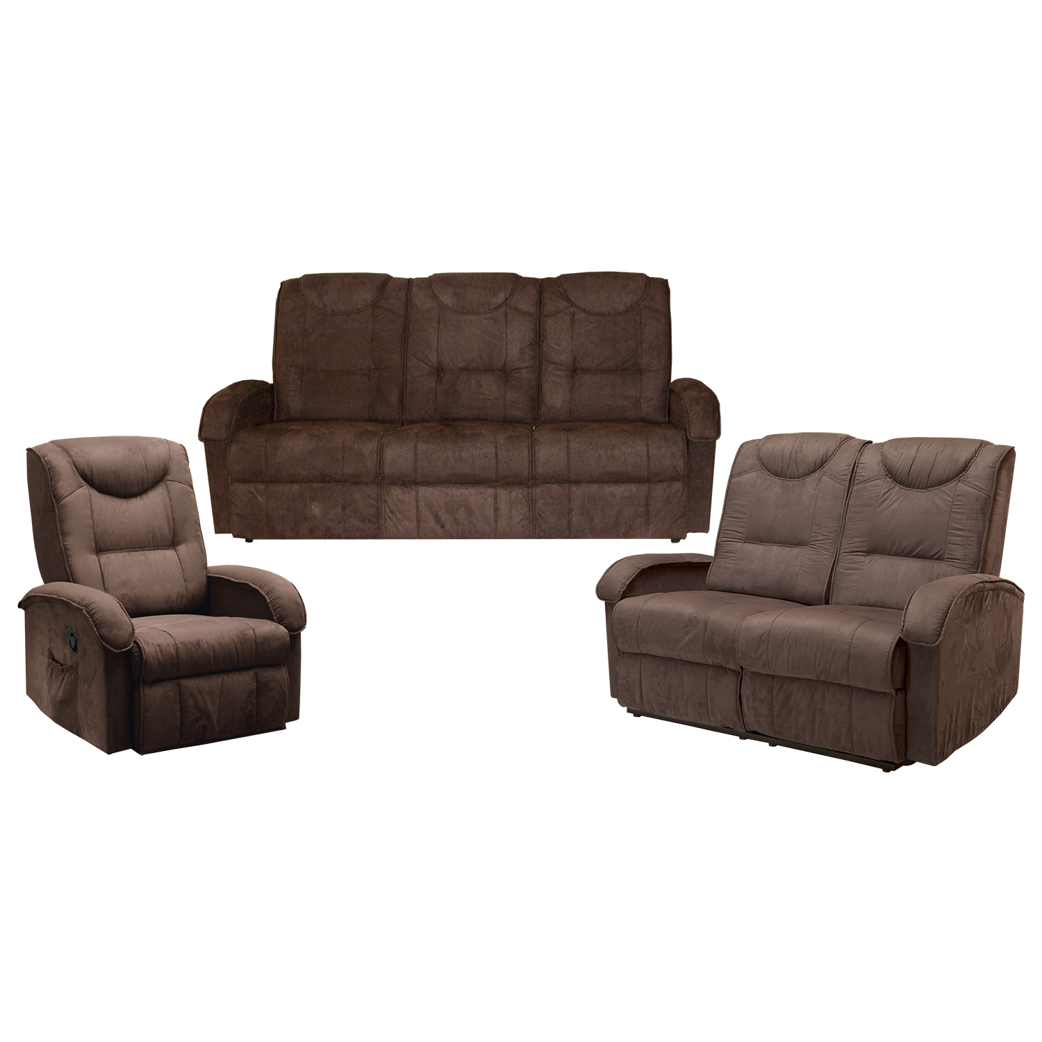 potah broušená kůže – imitace, barevné provedení hnědá oba krajní sedáky jsou polohovací, střední je pevný výška sedu 46 cm, výška opěradla ...