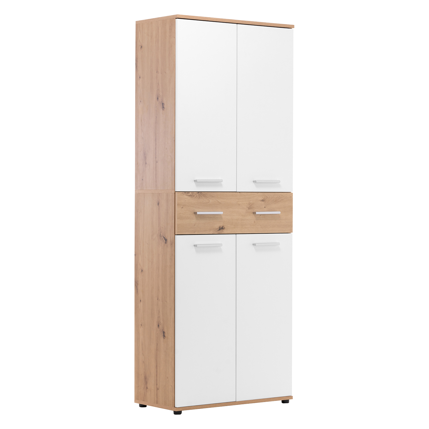 barevné provedení bílá / zlatý dub v levé části skříň se 4 policemi (1 pevná a 3 variabilní) na přední straně dveří je téměř po celé ploše zrcadlo v p...
