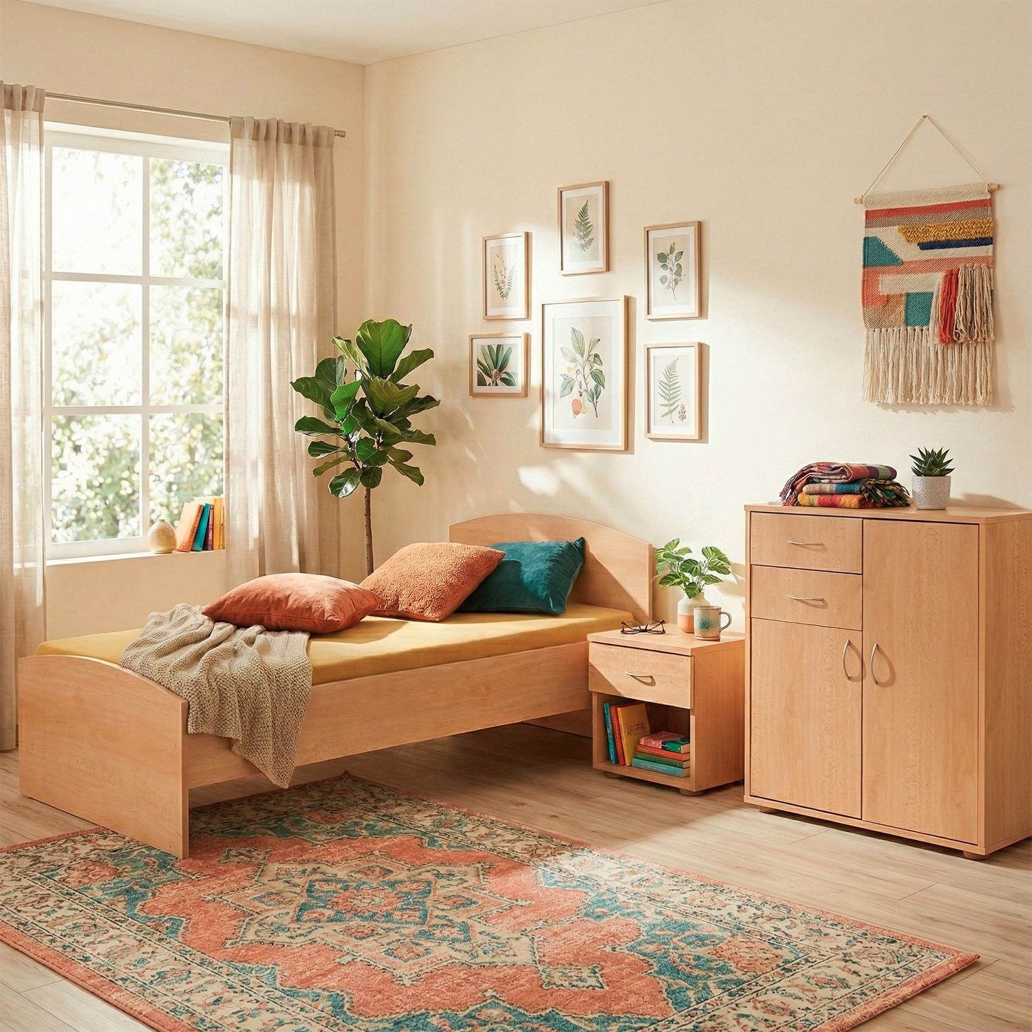 barevné provedení ořech / bílá 1 velká a 2 malé zásuvky, výška sedu 41 cm, cena bez roštu a matrace doporučený rozměr matrace 90 × 200 ...