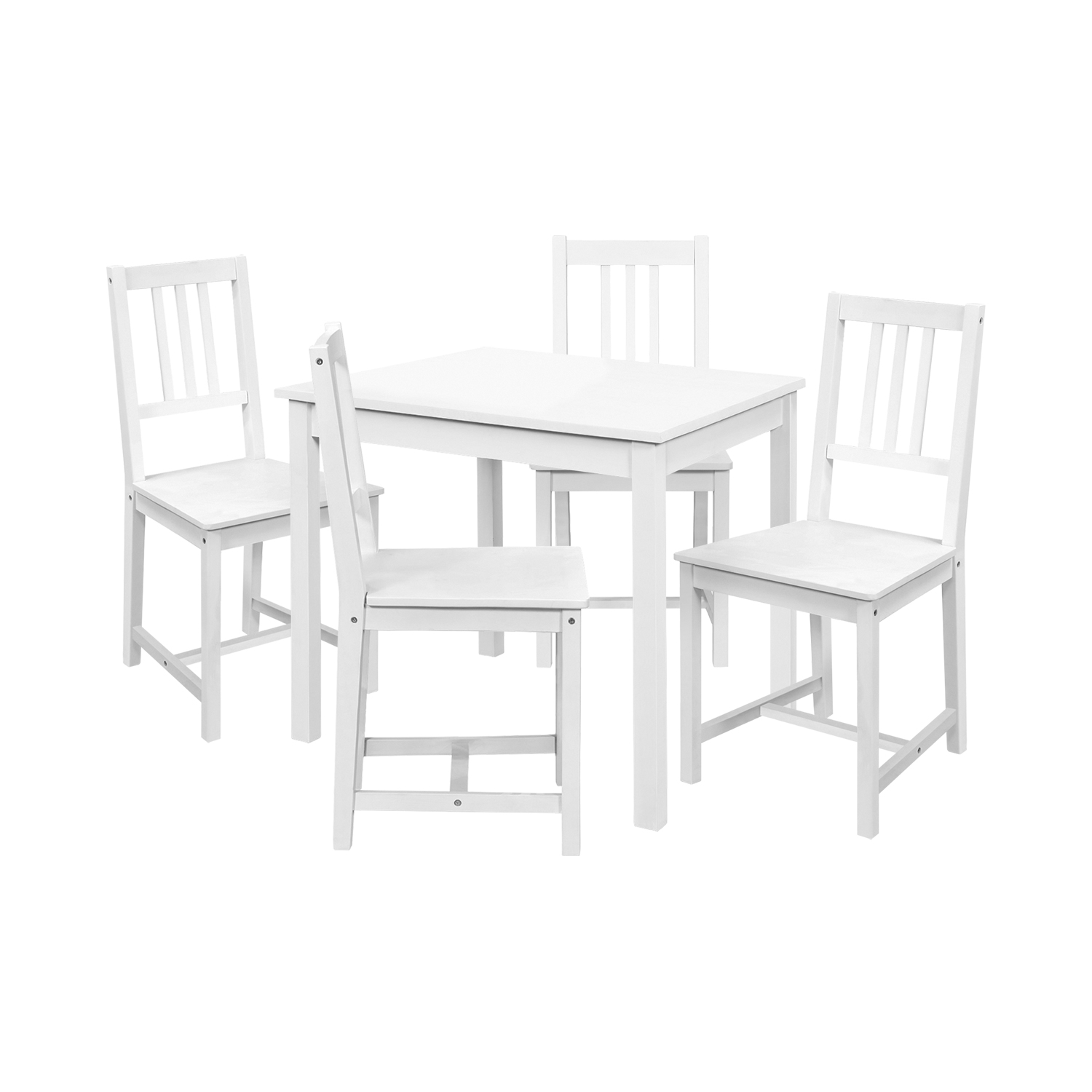 jídelní stůl 8848B a 4 jídelní židle 869B stůl i židle materiál masiv borovice, barevné provedení bílý lak výška sedu židle 45 cm rozmě...