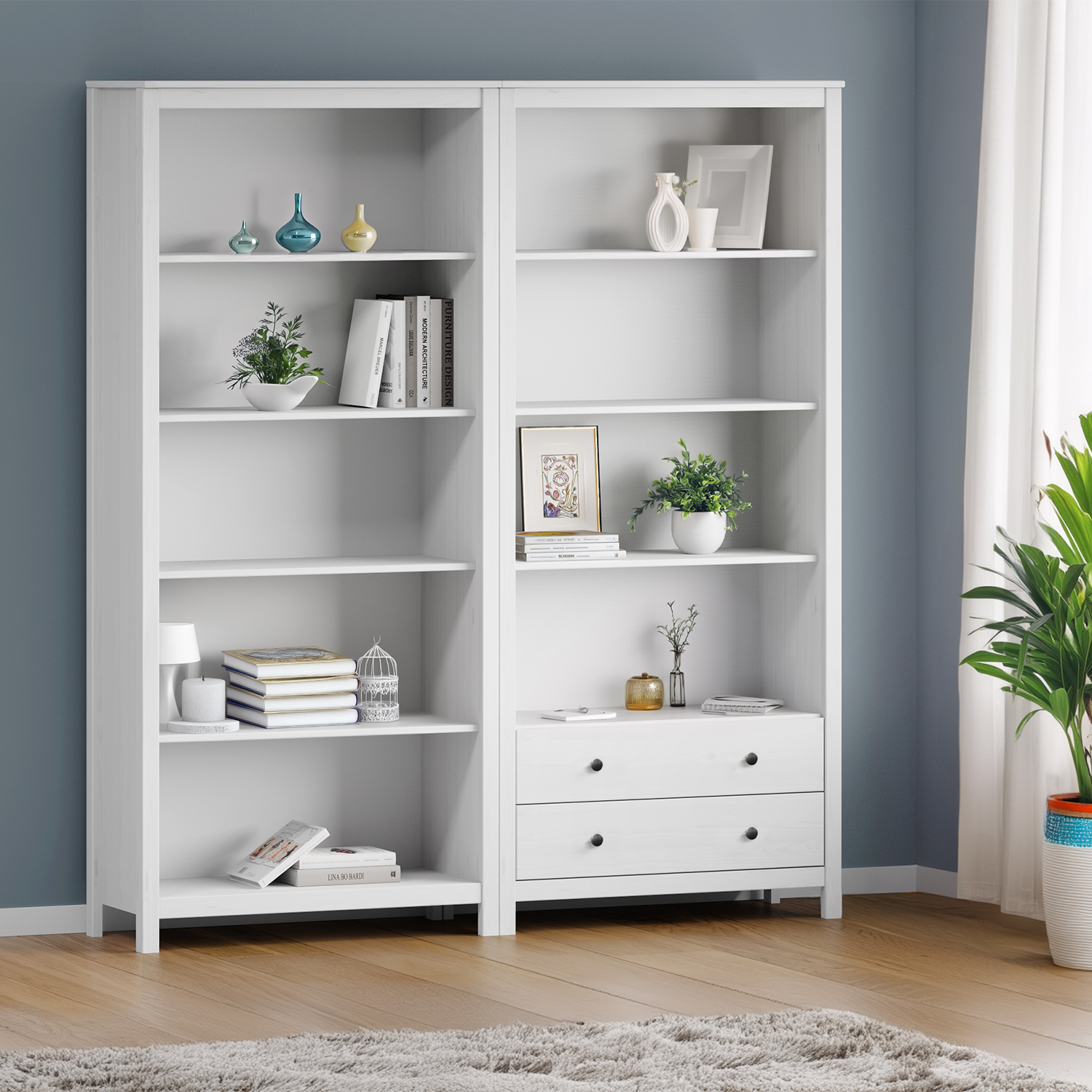 sestava knihoven TORINO 8070B a 8071B a vitríny TORINO 8072B materiál masiv borovice, barevné provedení bílý lak knihovna 8070B: čtyři polic...