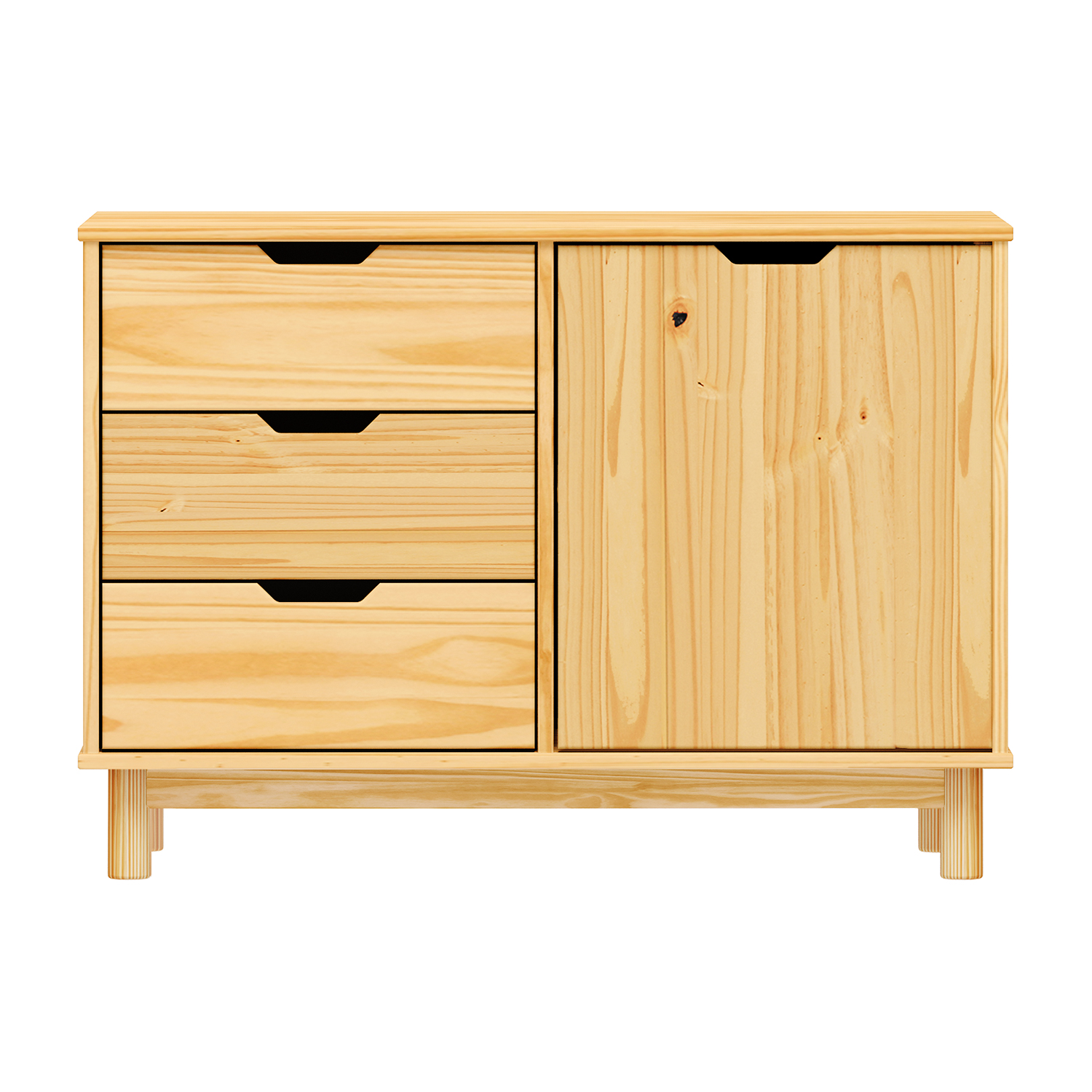 materiál masiv borovice, lakované provedení 2 zásuvky s kovovými pojezdy, 1 dvířka, 1 police otvor na protažení kabelů