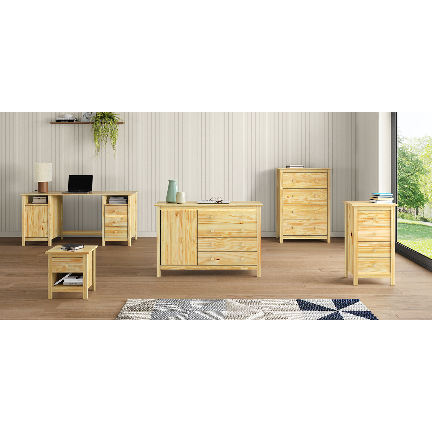 materiál masiv borovice, lakované provedení čtyři zásuvky s kovovými pojezdy