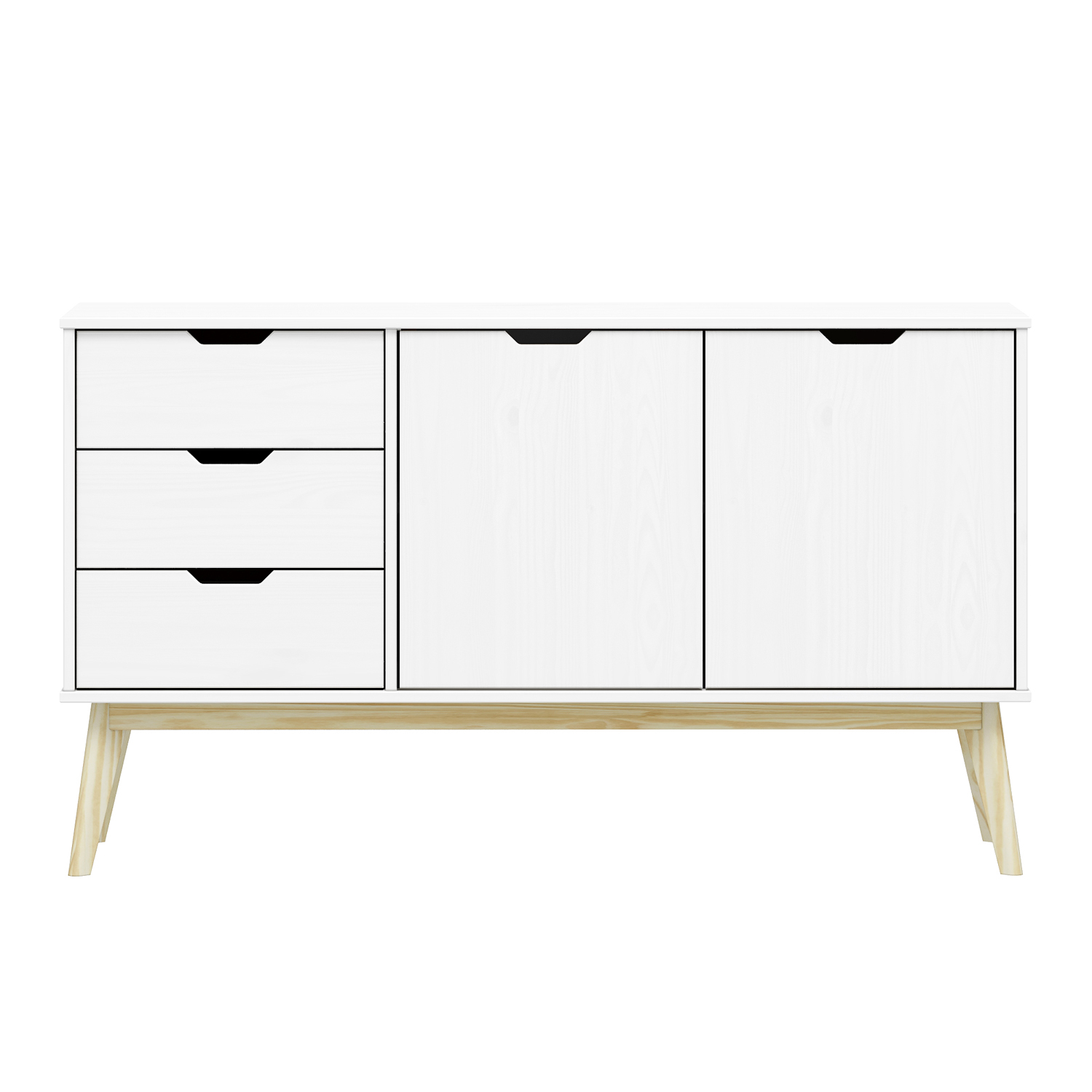 materiál masiv borovice, barevné provedení bílý lak 3 zásuvky s kovovými pojezdy, 2 dvířka, 1 police