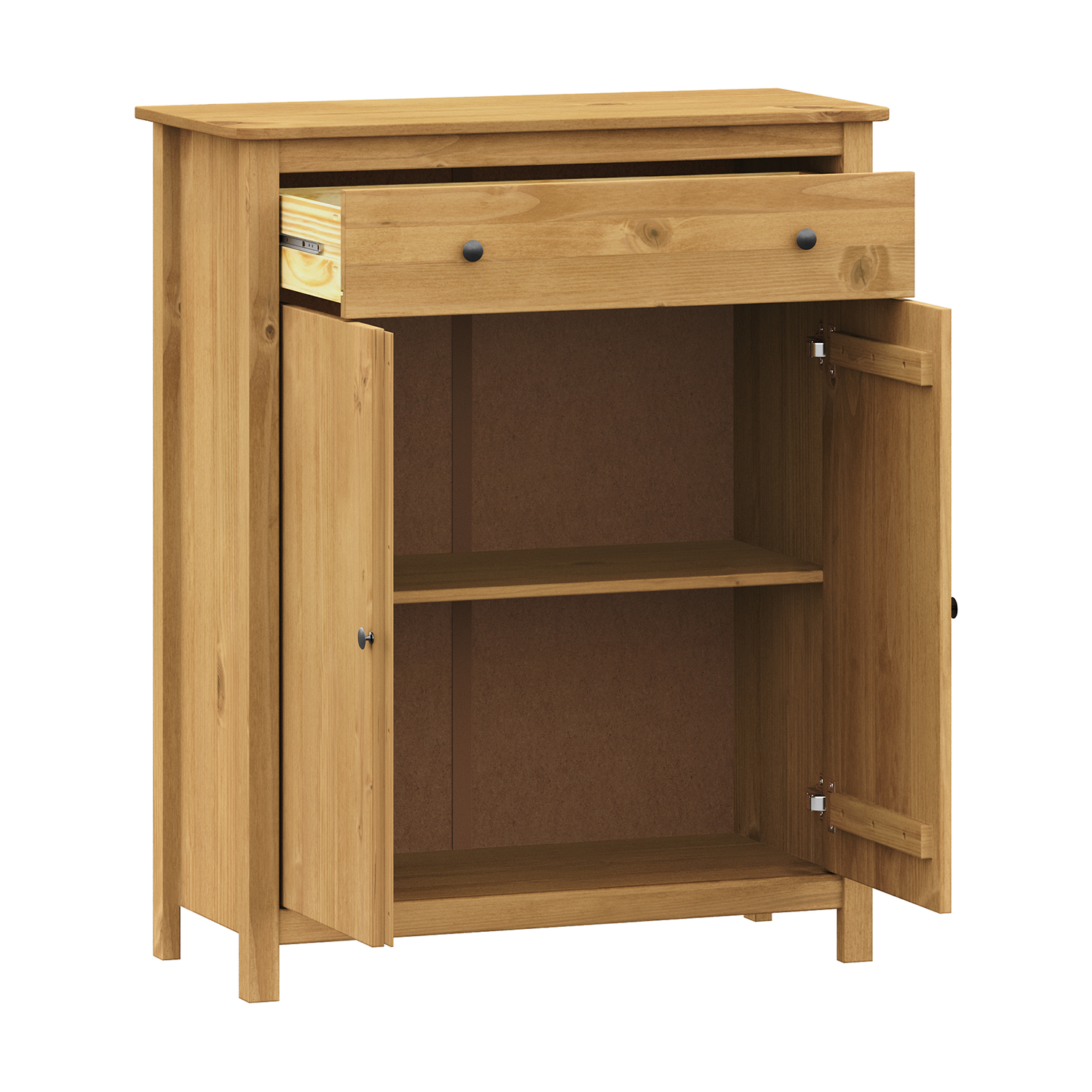 1 zásuvka s kovovými pojezdy, 2 plné dveře, 1 police