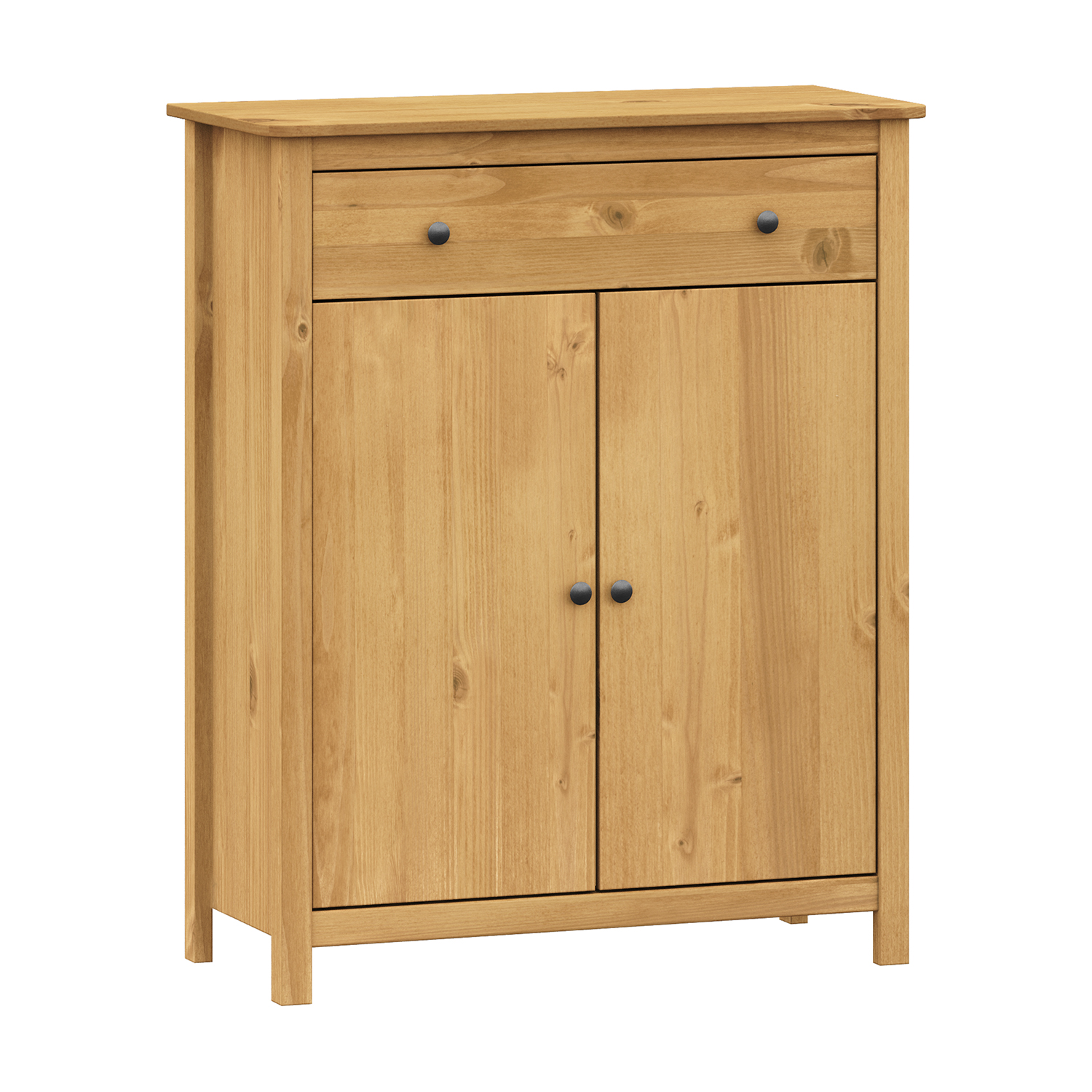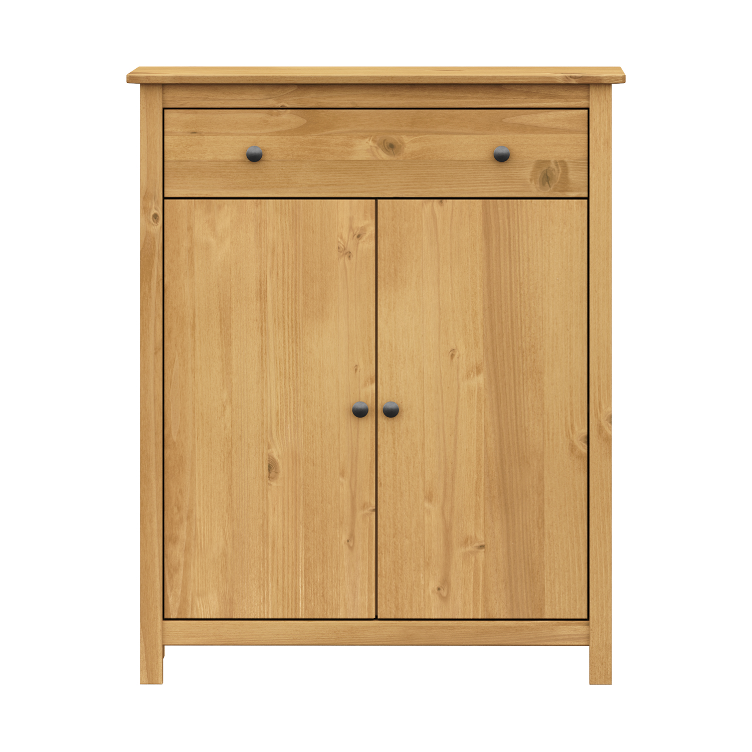 materiál masiv borovice voskovaná v medovém odstínu kovové úchytky v barevném provedení černěná mosaz 2 zásuvky s kovovými pojezdy