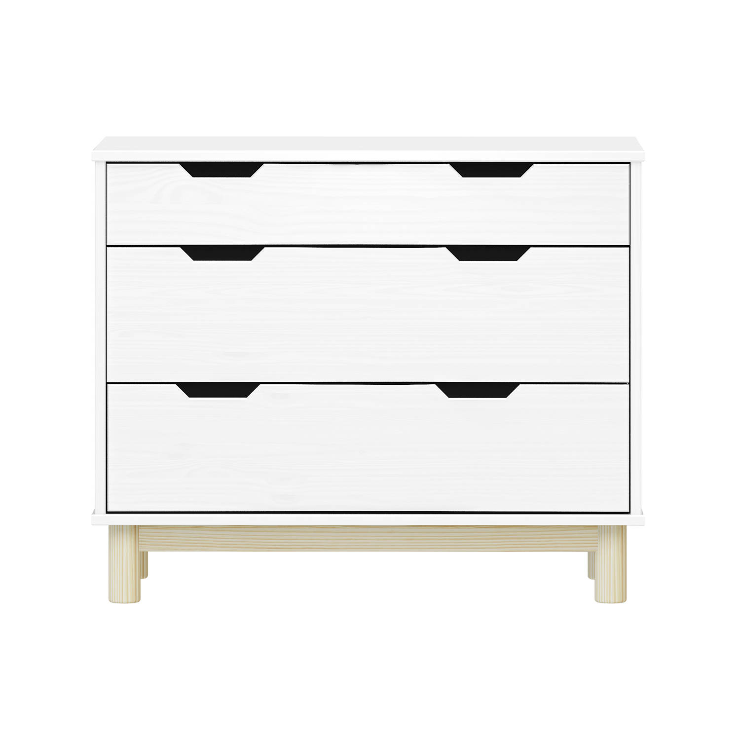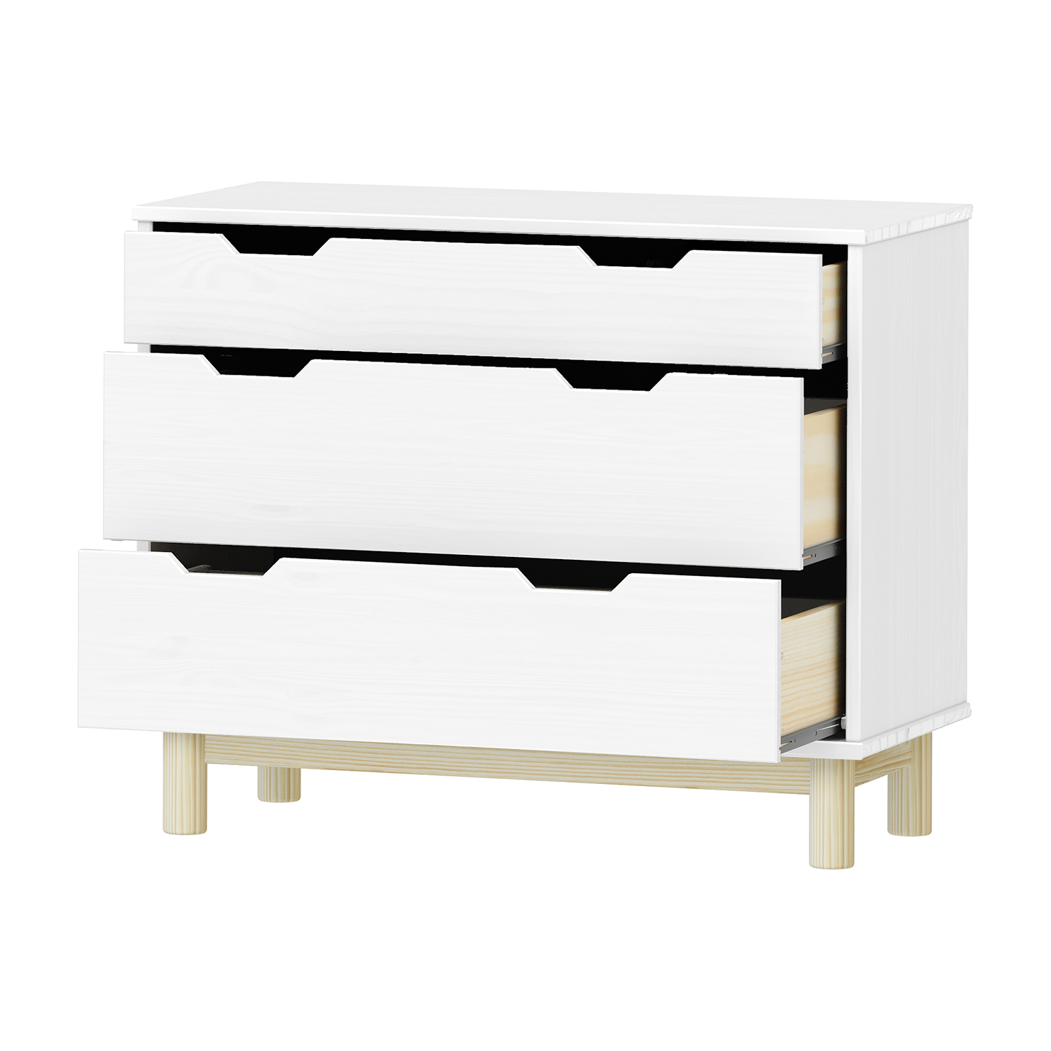 materiál masiv borovice, barevné provedení bílý lak 2 zásuvky s kovovými pojezdy, 1 dvířka, 1 police otvor na protažení kabelů