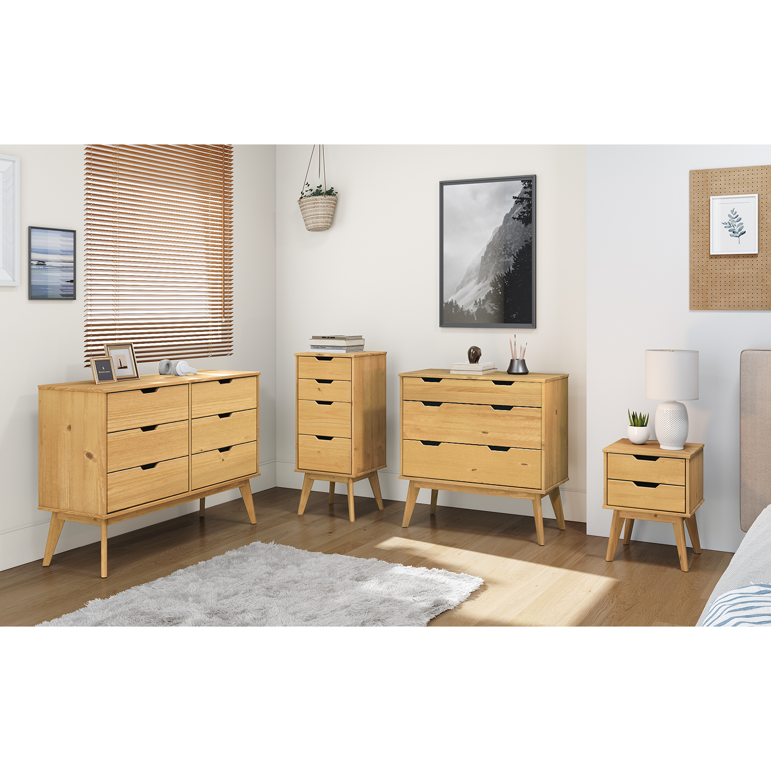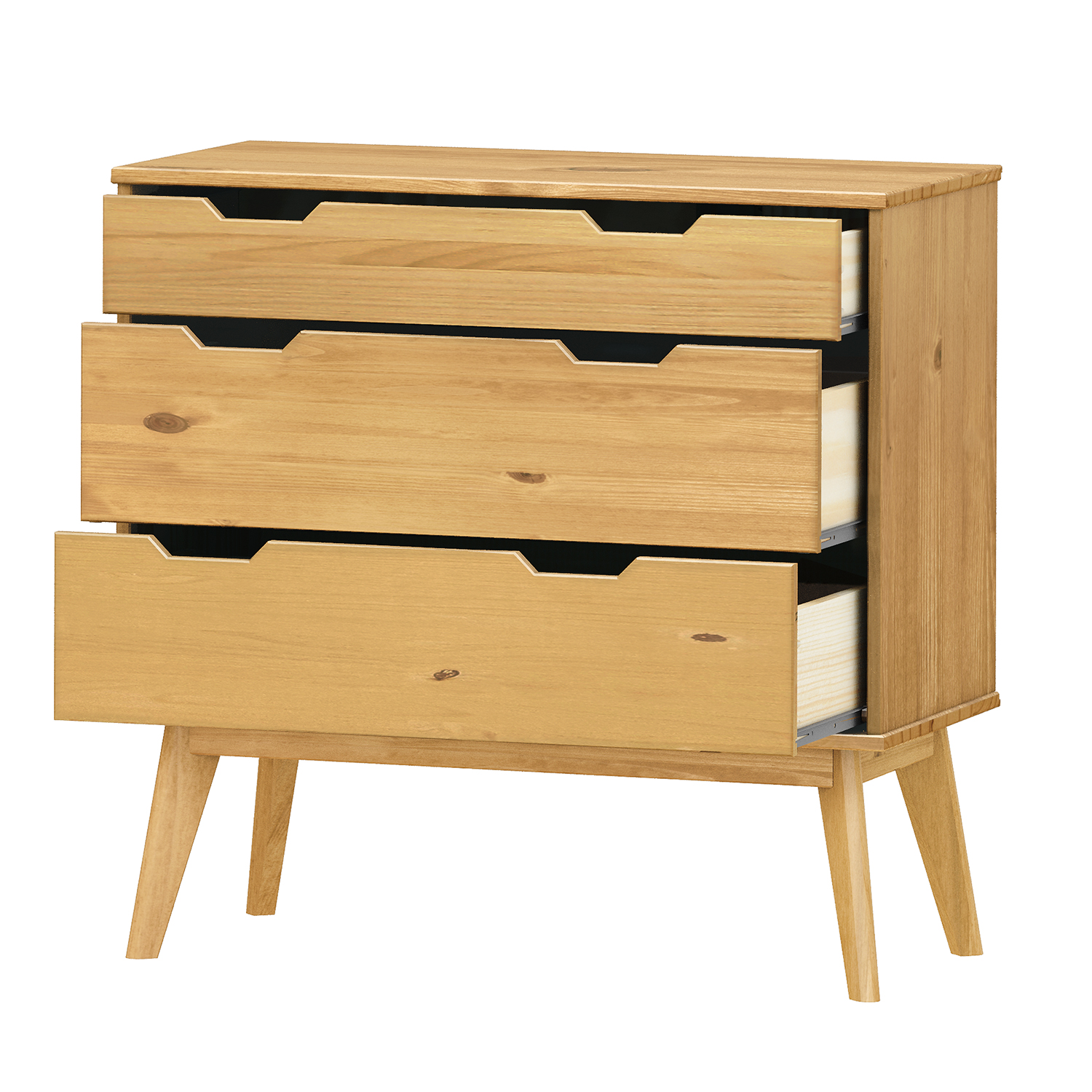 materiál masiv borovice voskovaná v medovém odstínu 1 menší a 2 větší zásuvky s kovovými pojezdy