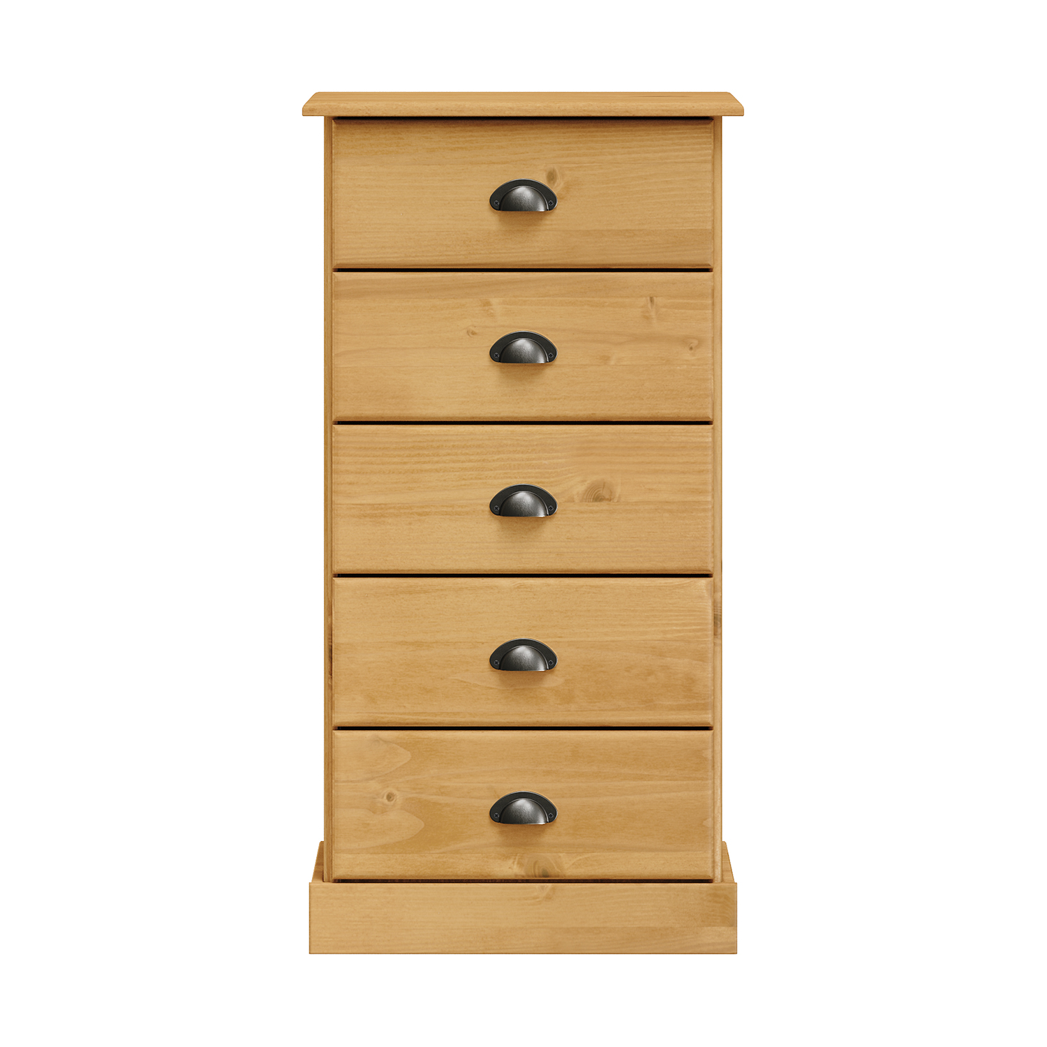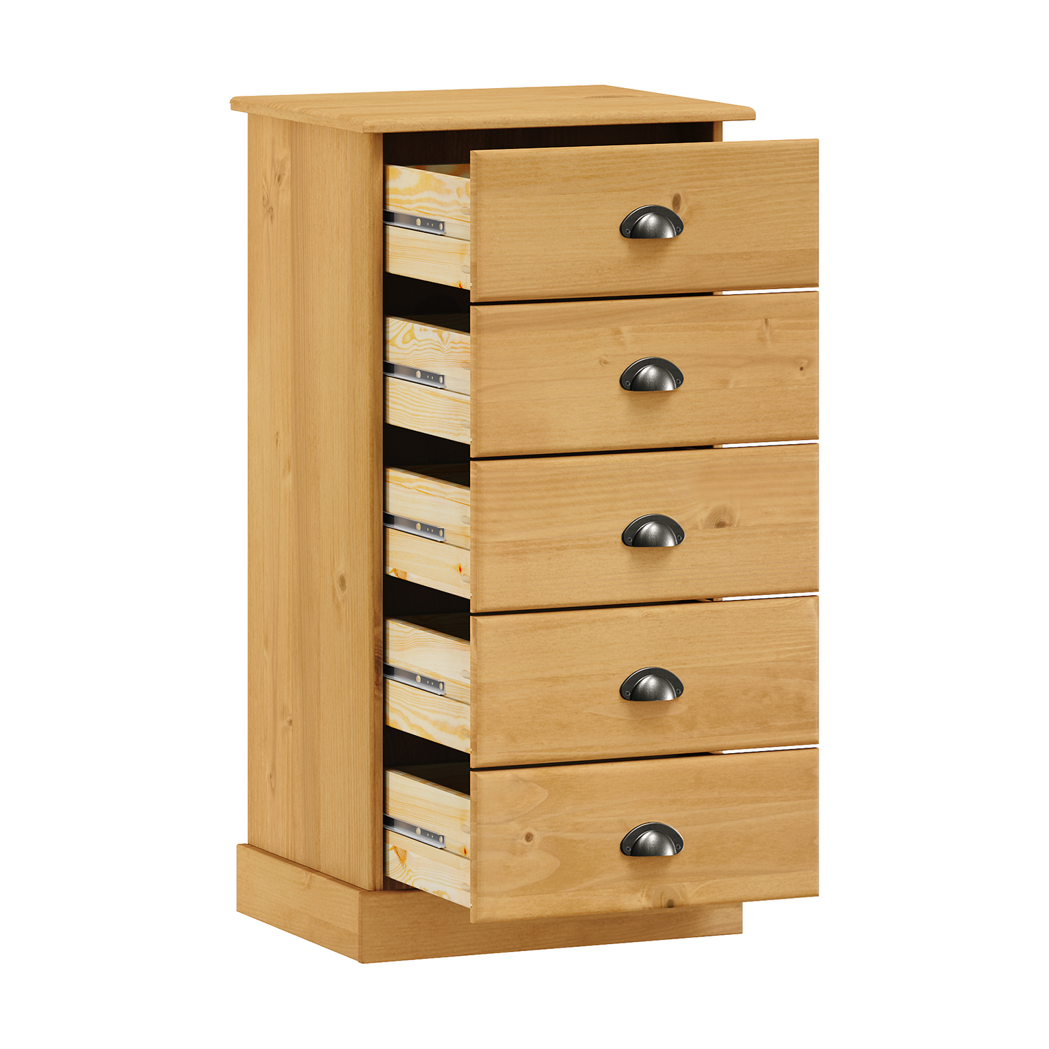 materiál masiv borovice voskovaná v medovém odstínu 5 zásuvek s kovovými úchytkami a pojezdy