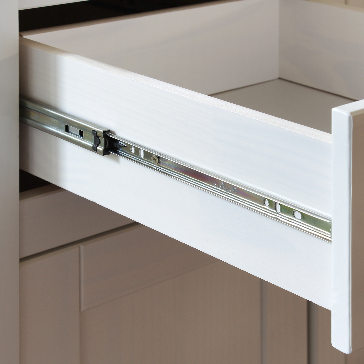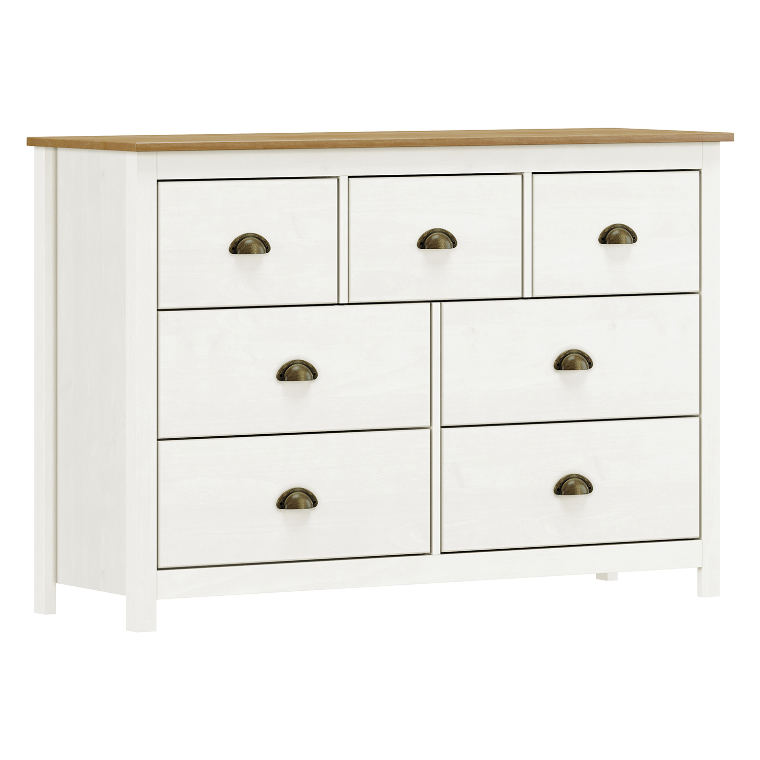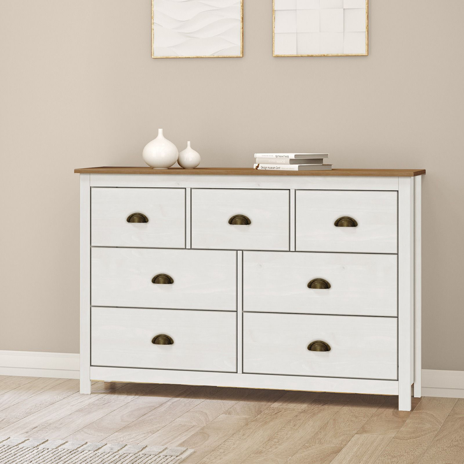 materiál masiv borovice, barevné provedení bílý / hnědý lak čtyři zásuvky s kovovými úchytkami a pojezdy