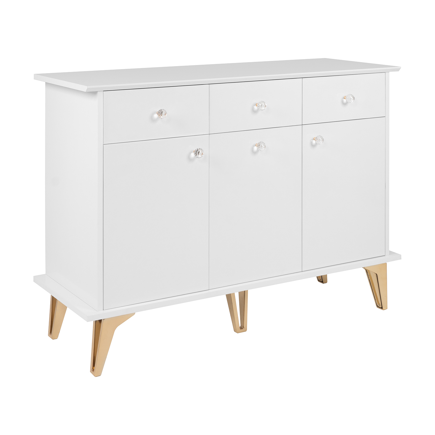 barevné provedení lesklá bílá skleněné úchytky ve vzhledu diamant plastové nohy ve zlaté barvě, výška nohy 19 cm 2 dvířka, vnitřní prostor dělený na 4...