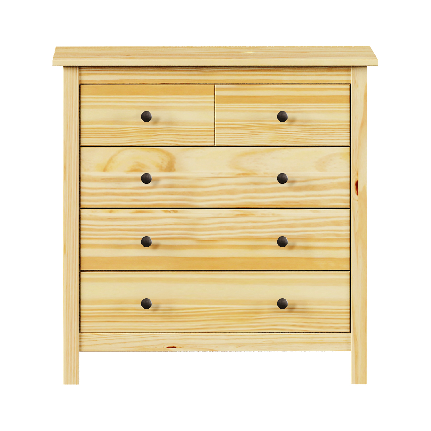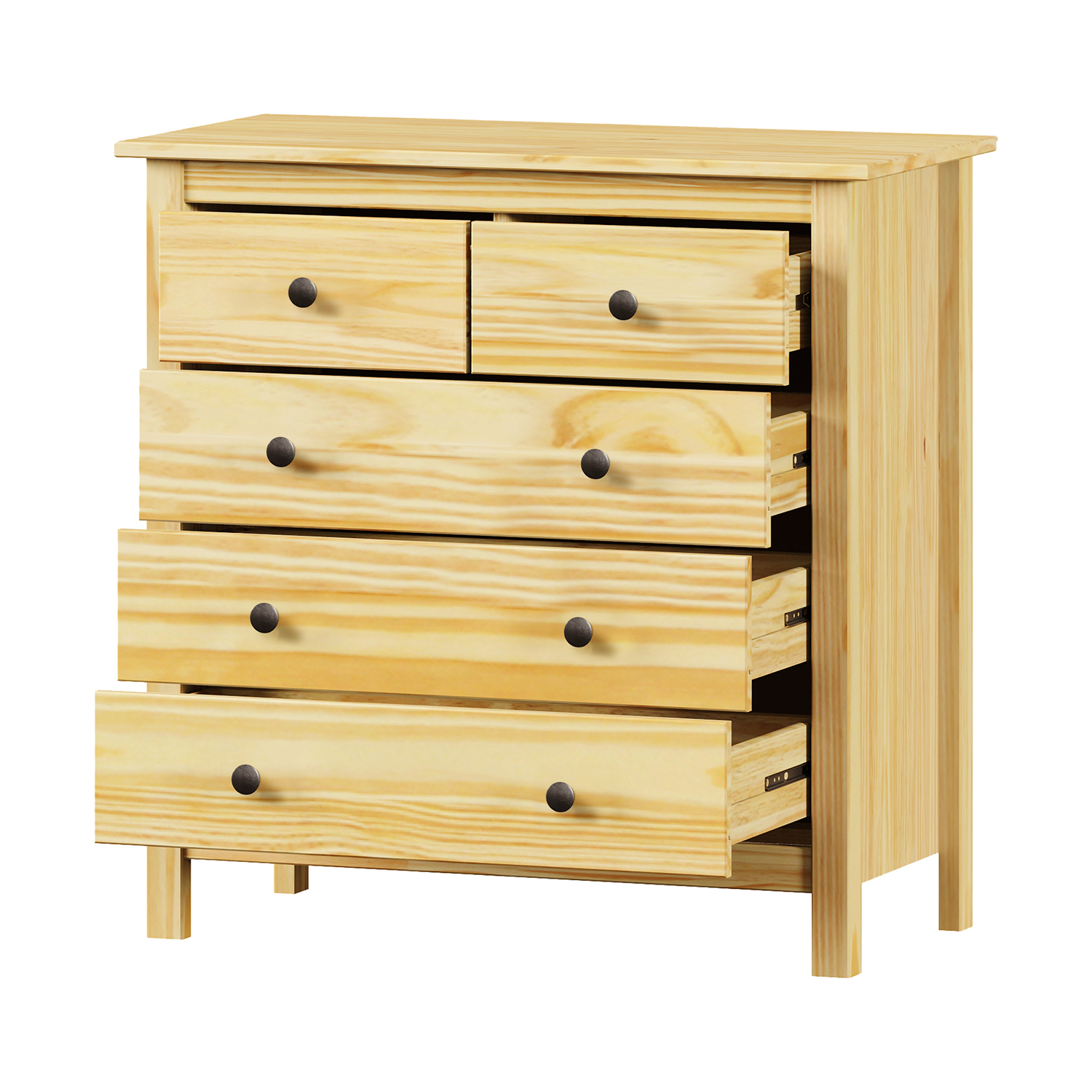 materiál masiv borovice, lakované provedení kovové úchytky v barevném provedení černěná mosaz 5 zásuvek s kovovými pojezdy