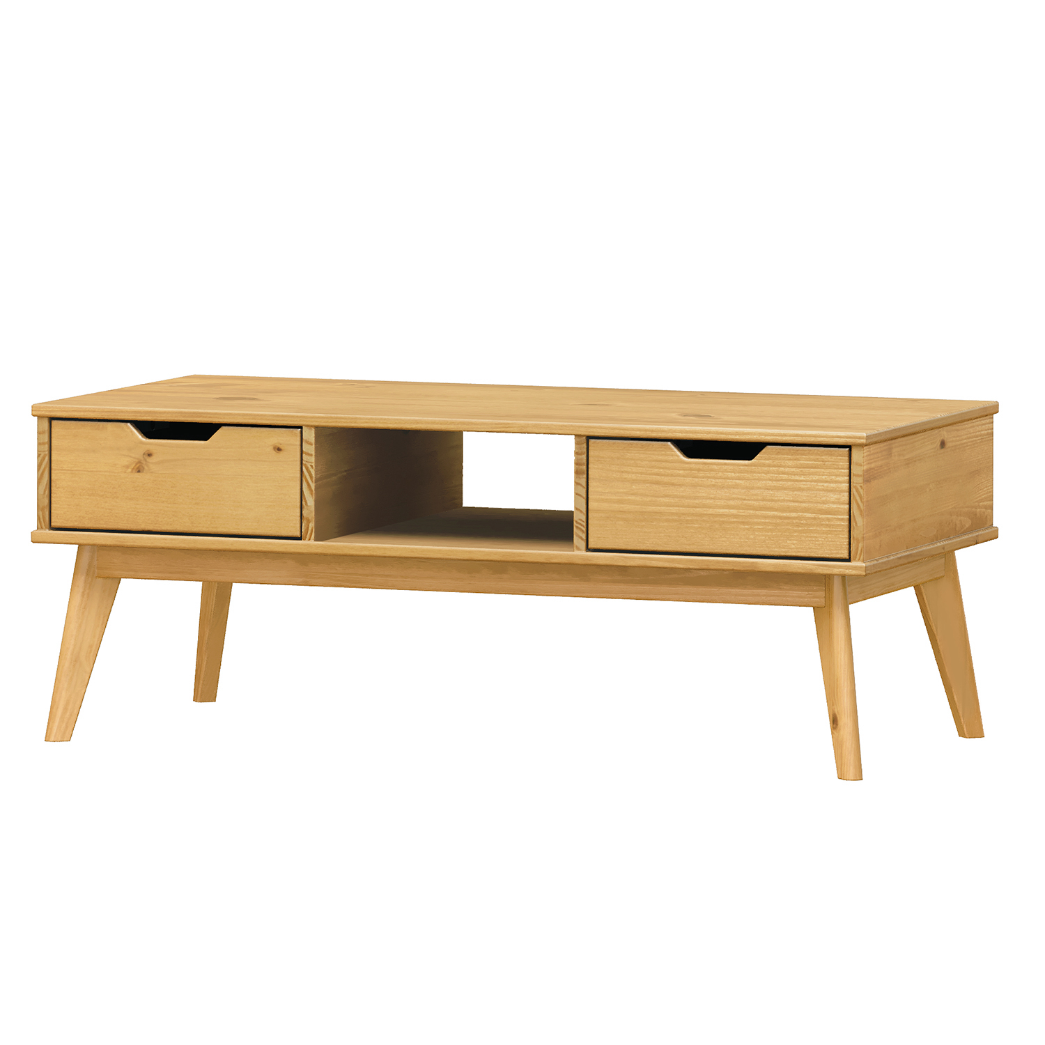 materiál masiv borovice, lakované provedení 2 zásuvky s kovovými pojezdy, 1 dvířka, 1 police otvor na protažení kabelů