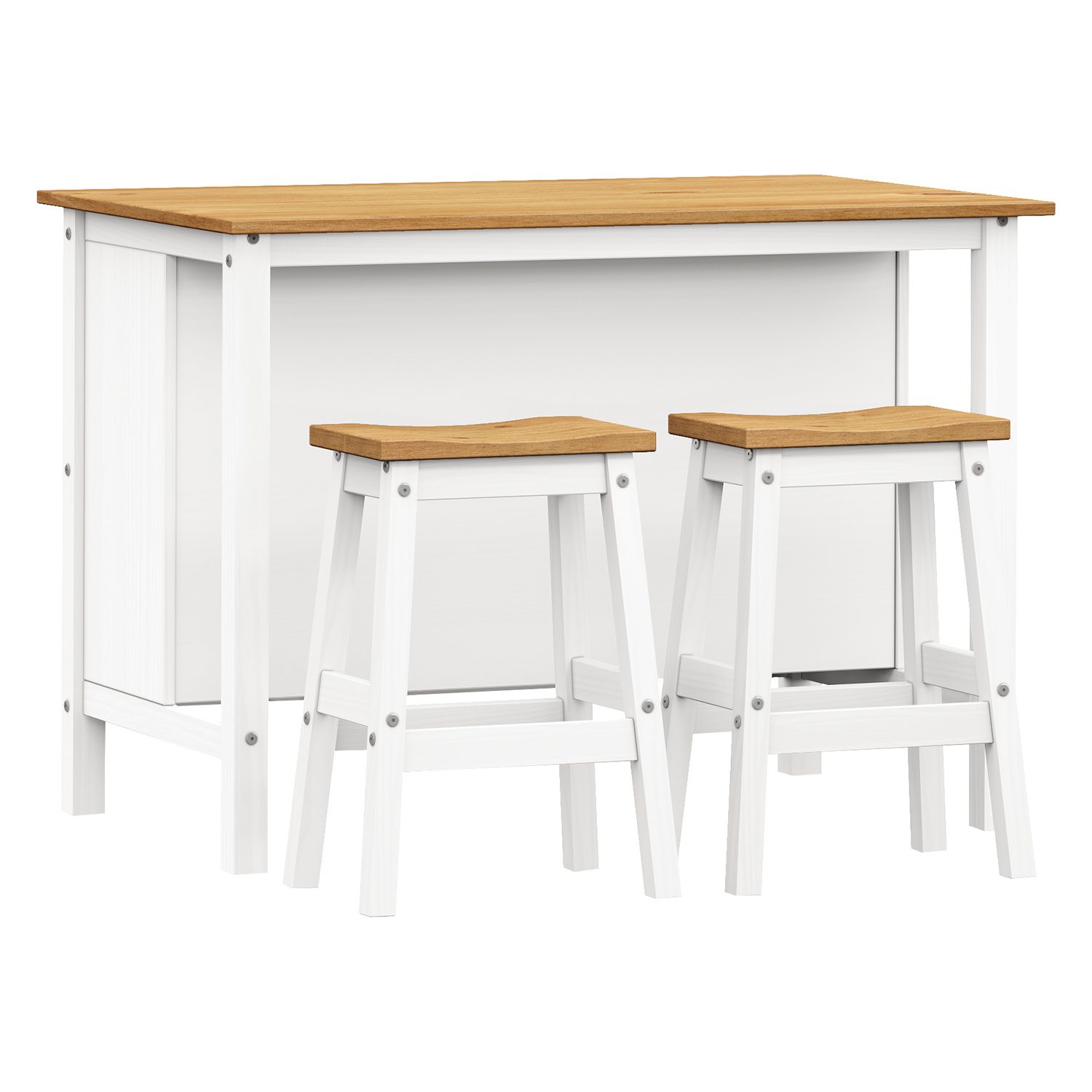 materiál masiv borovice voskovaná v bílém odstínu horní deska a police voskovaná v medovém odstínu jedna police součást sestavy Corona 2