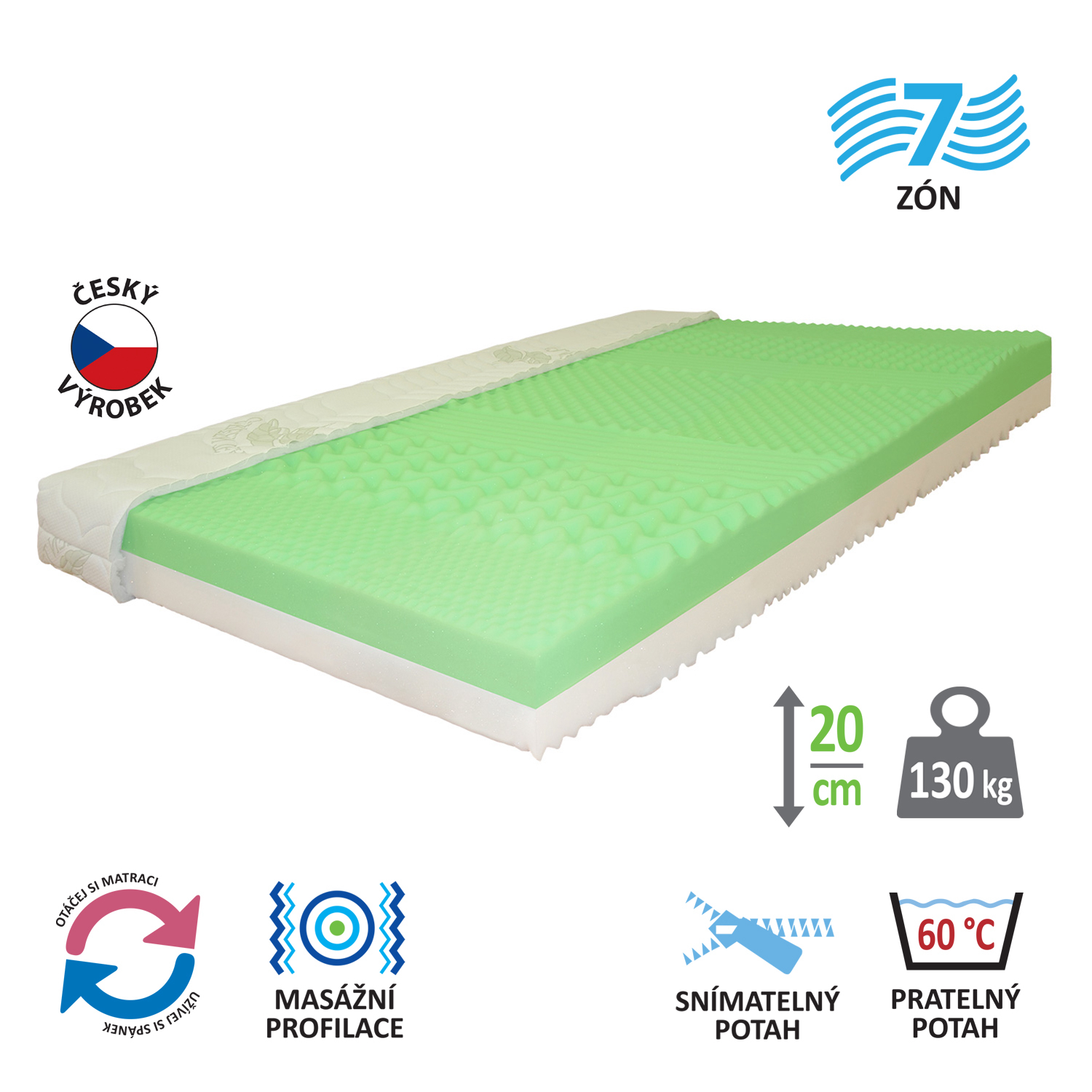 masážní profily s různou pevností stran, jádro z Flexifoam pěny povrch vyprofilován do 7 anatomických zón na obou stranách tvrdá (bílá) a mě...