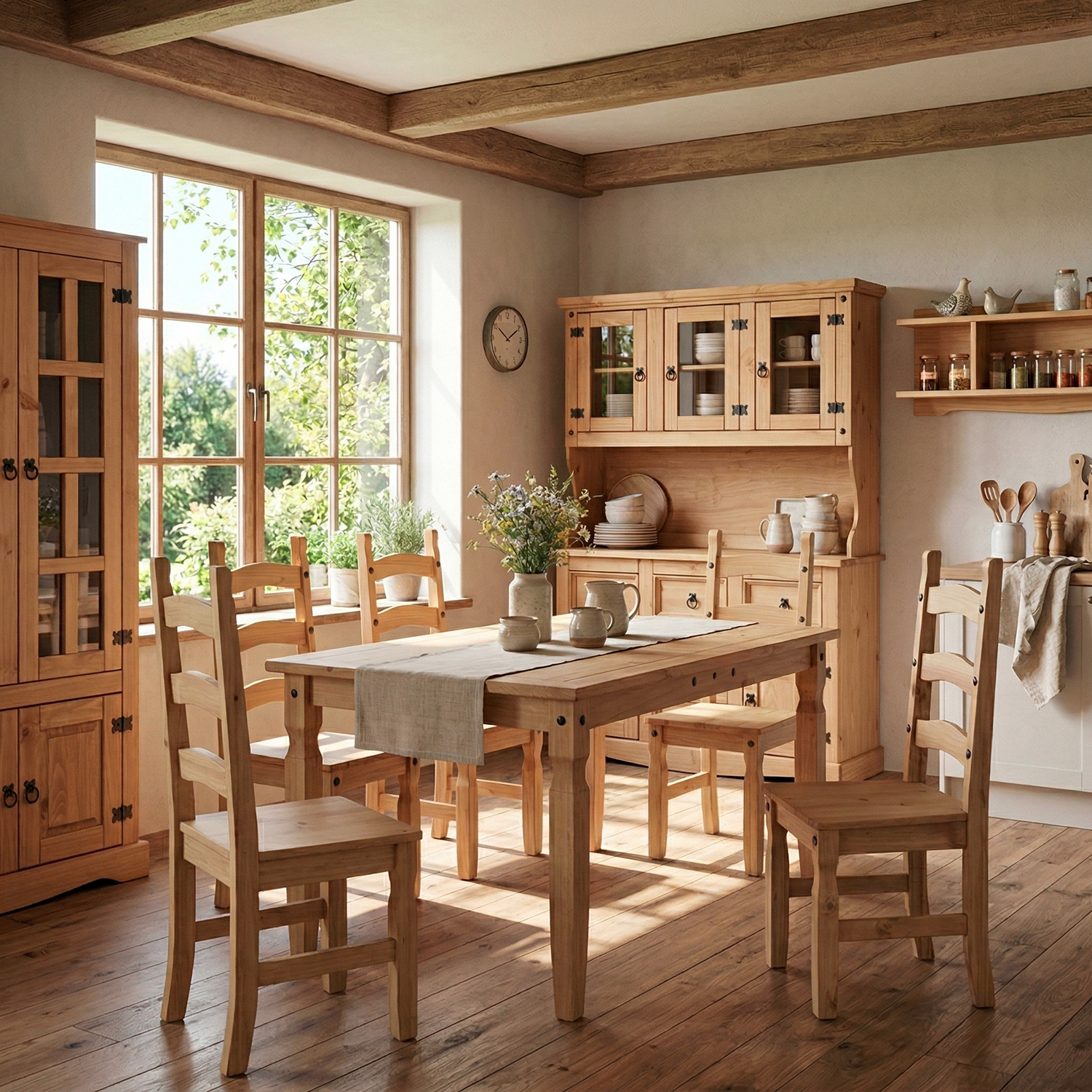 materiál masiv borovice voskovaná v medovém odstínu součást sestavy Corona