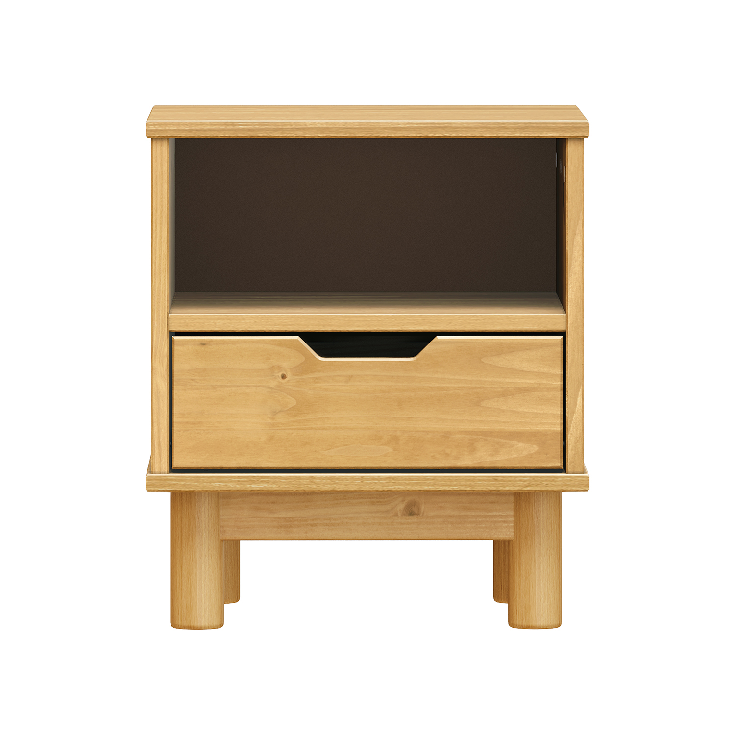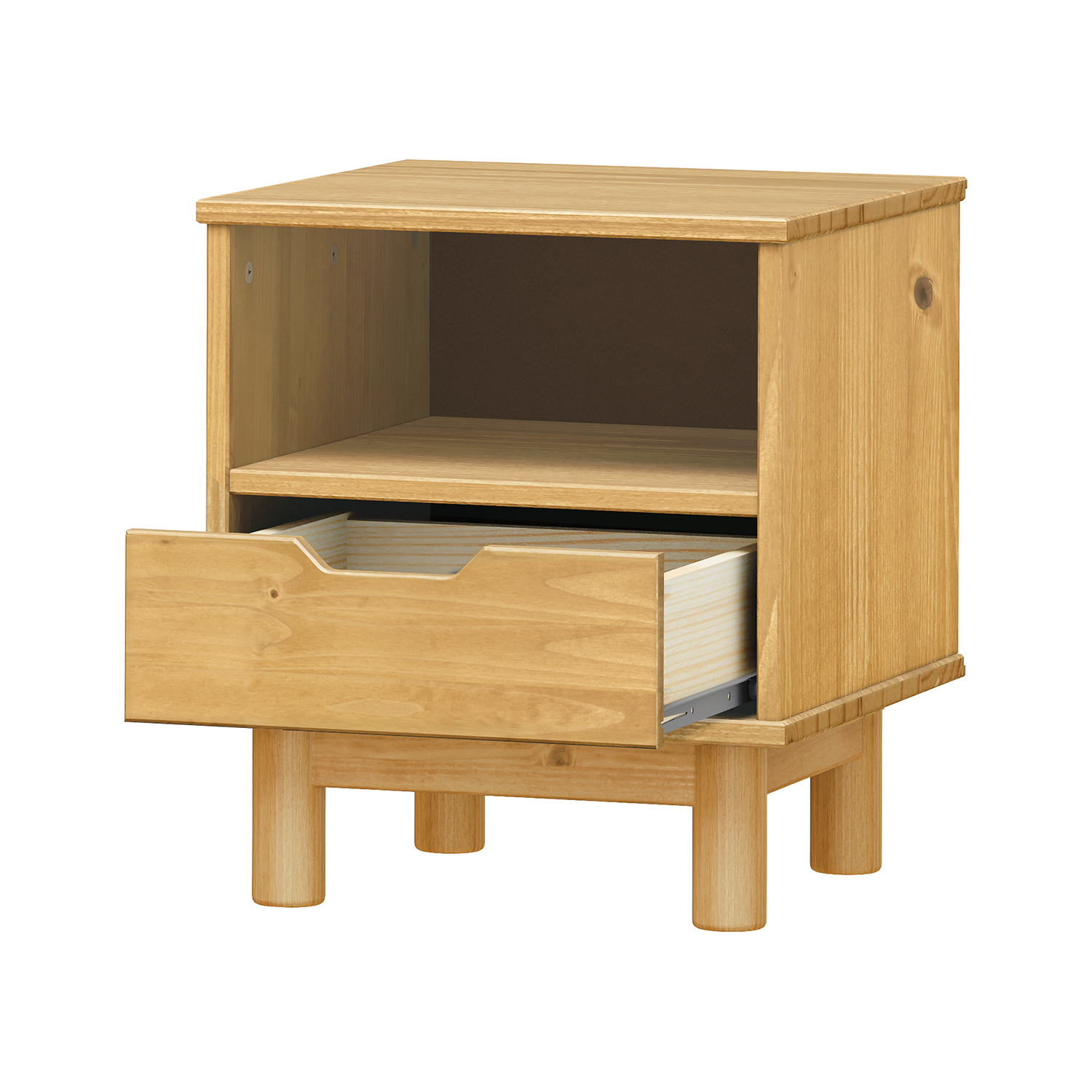 materiál masiv borovice, lakované provedení 2 zásuvky s kovovými pojezdy, 1 dvířka, 1 police otvor na protažení kabelů