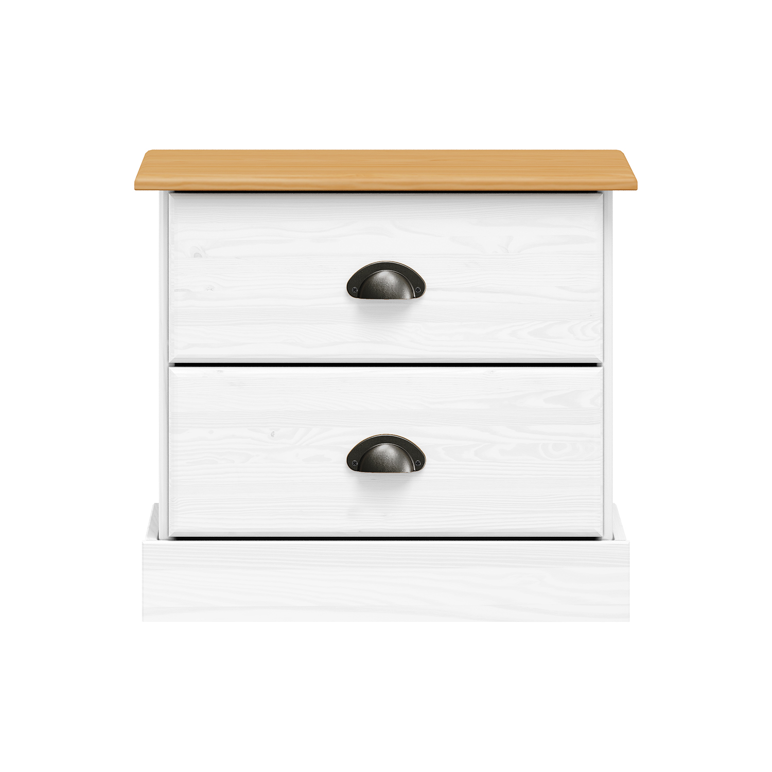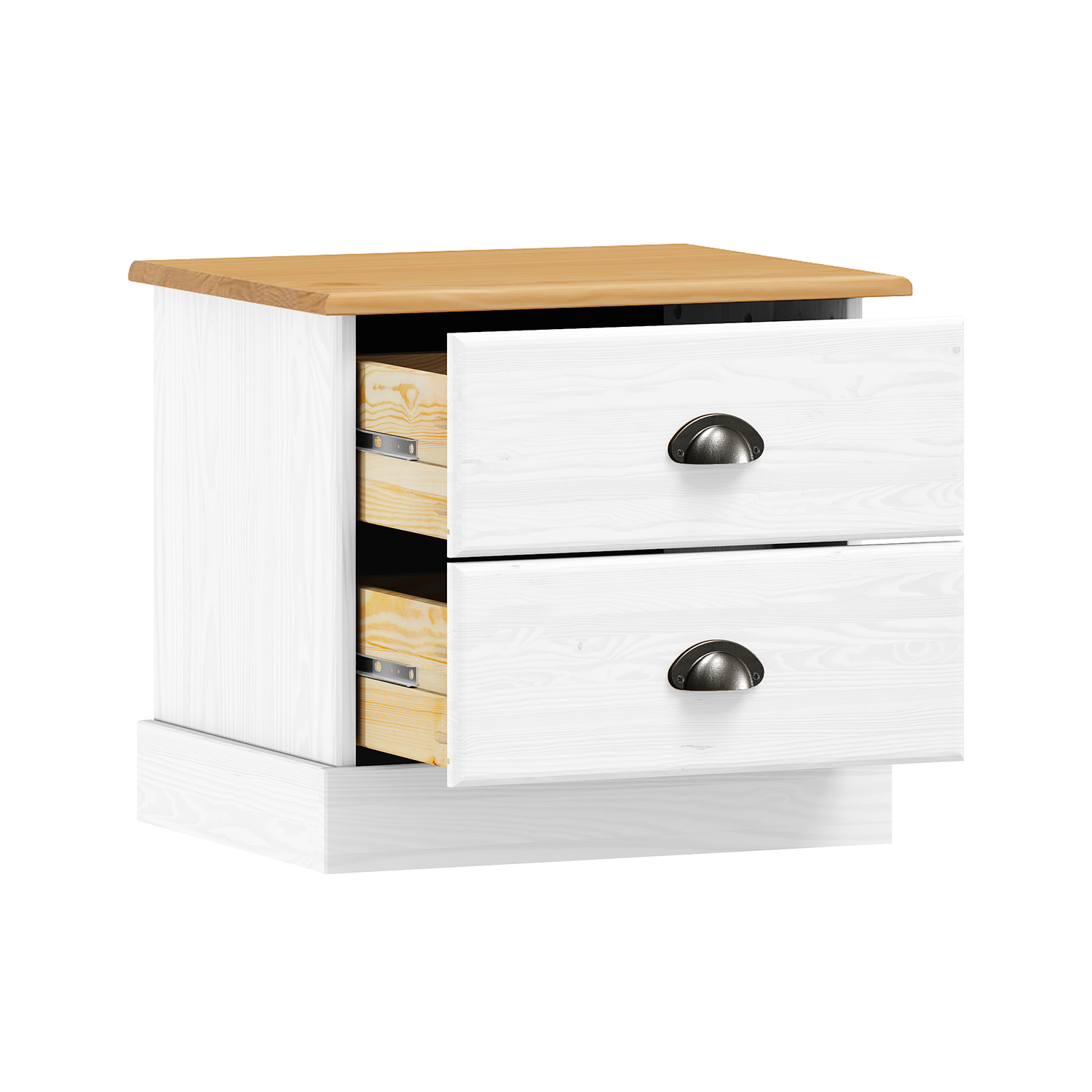 materiál masiv borovice, barevné provedení bílý lak 2 zásuvky s kovovými úchytkami a pojezdy
