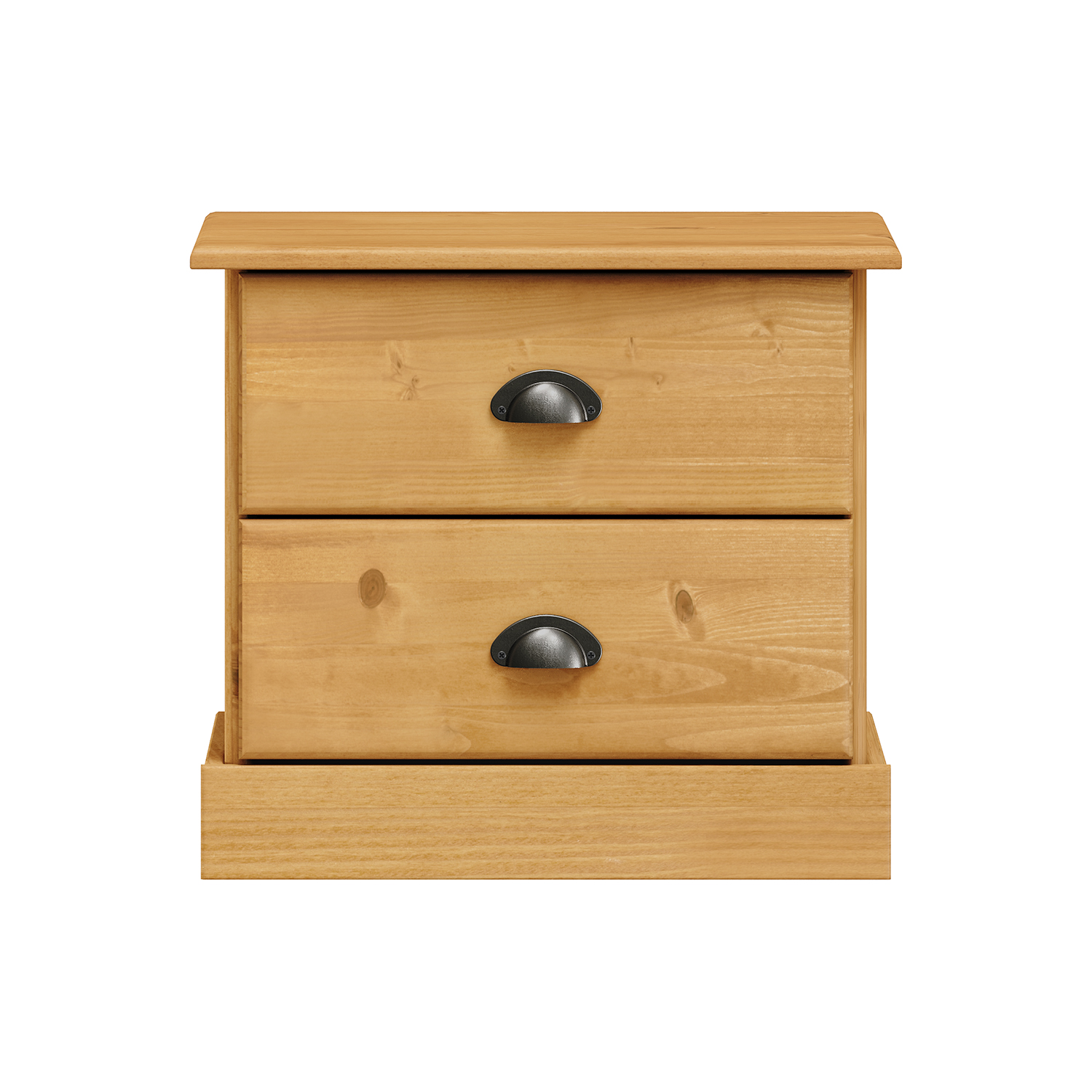 materiál masiv borovice voskovaná v medovém odstínu 2 zásuvky s kovovými úchytkami a pojezdy
