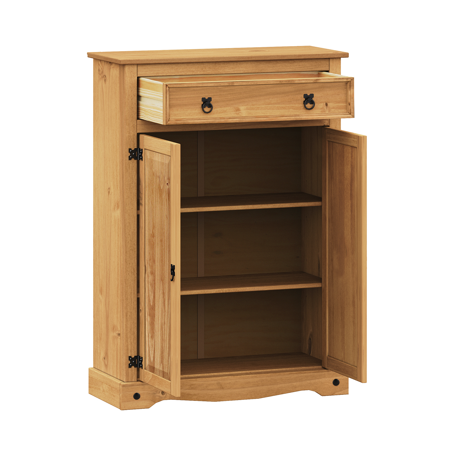 materiál masiv borovice voskovaná v medovém odstínu 2 částečně prosklená dvířka, kovové ozdobné úchytky součást sestavy Corona
