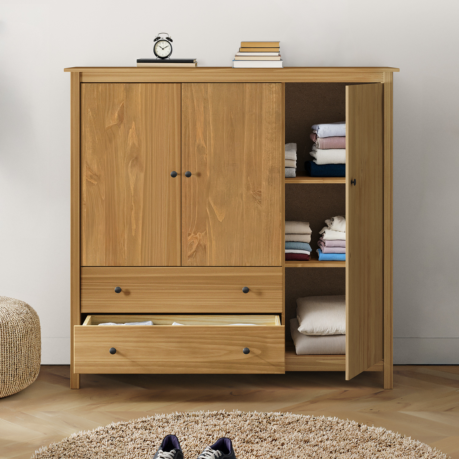 materiál masiv borovice voskovaná v medovém odstínu kovové úchytky v barevném provedení černěná mosaz 2 zásuvky s kovovými pojezdy