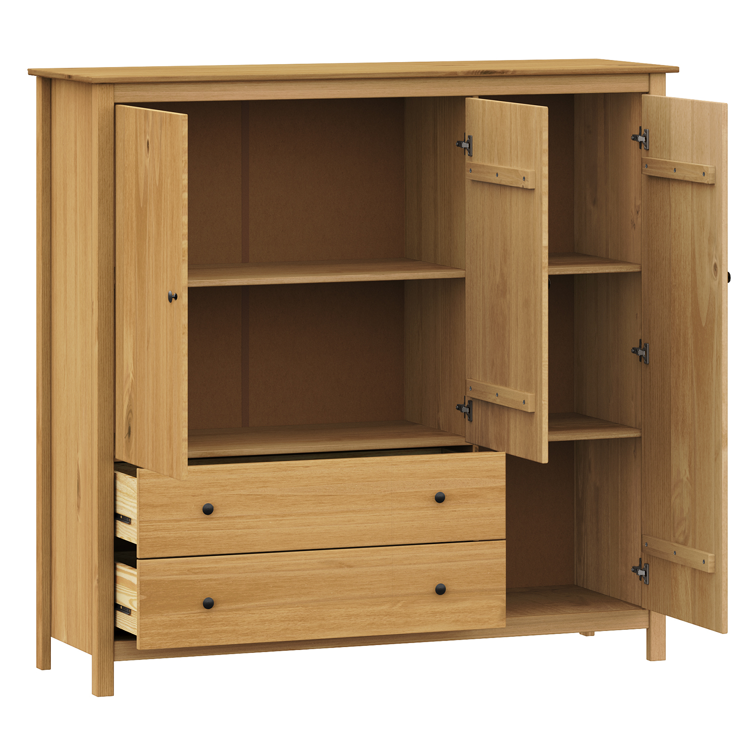 materiál masiv borovice voskovaná v medovém odstínu kovové úchytky v barevném provedení černěná mosaz 2 menší a 3 větší zásuvky s kovovými pojezd...