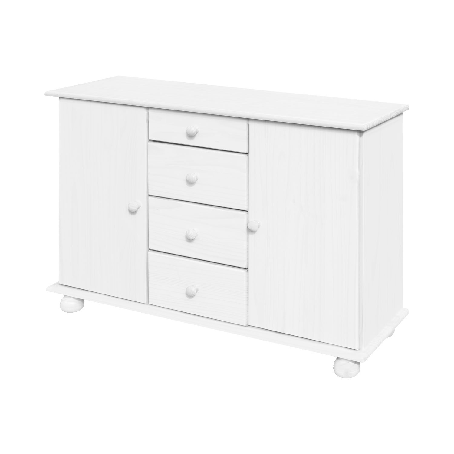 sestava příborníku 8045B a nástavce 8046B materiál masiv borovice, barevné provedení bílý lak příborník: 4 zásuvky s kovovými pojezdy, 2 skř...