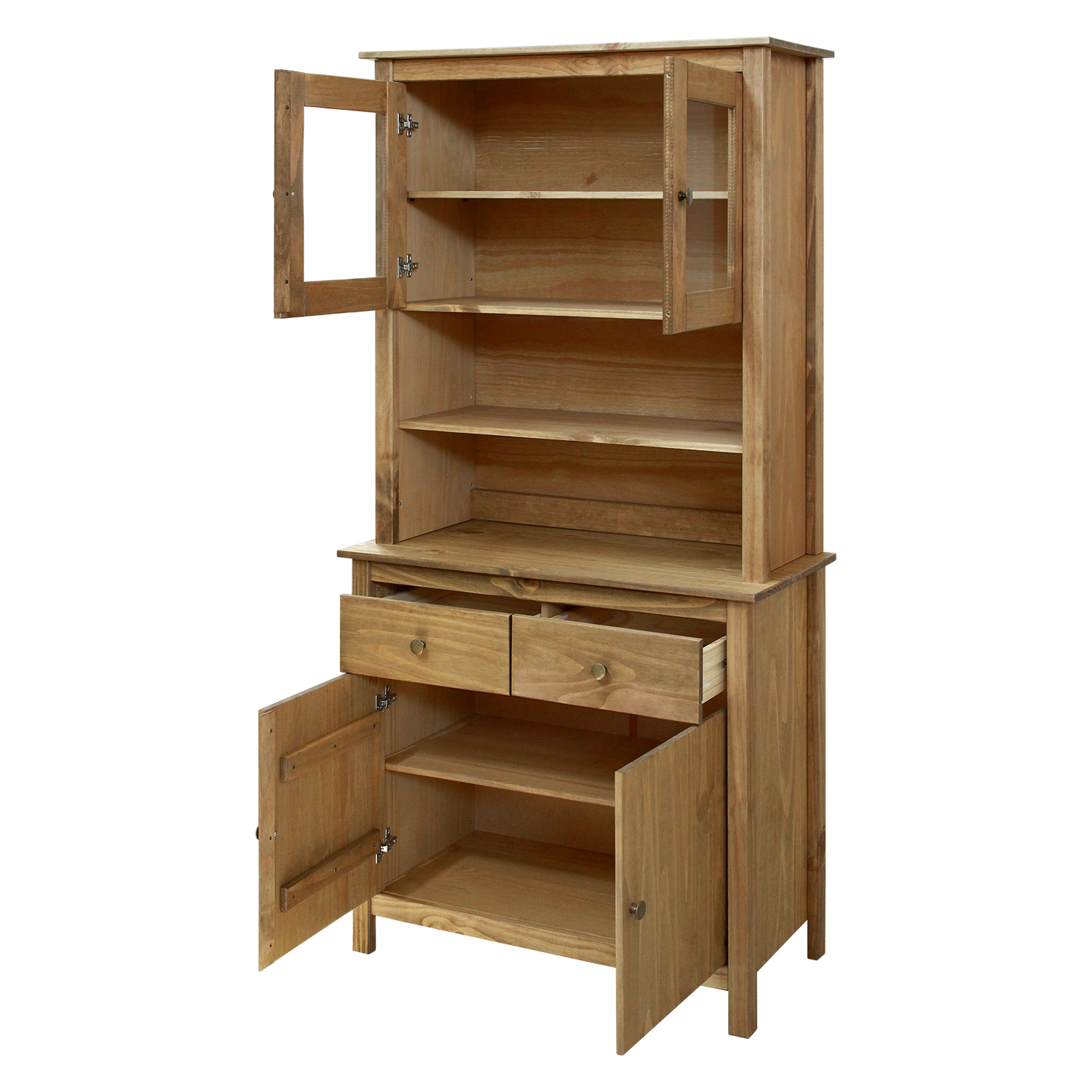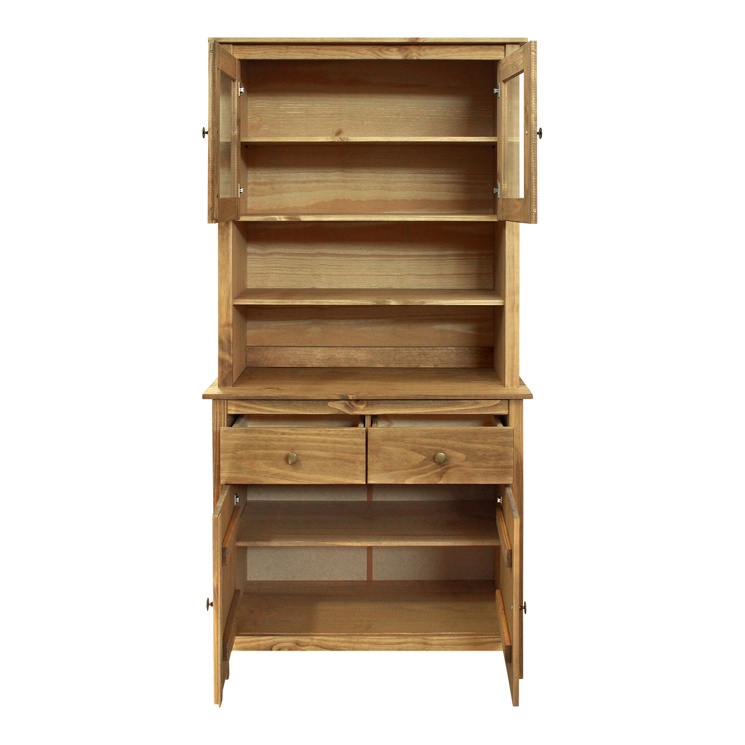 materiál masiv borovice voskovaná v medovém odstínu kovové úchytky v barevném provedení černěná mosaz 2 prosklené dveře, 2 police maxim...