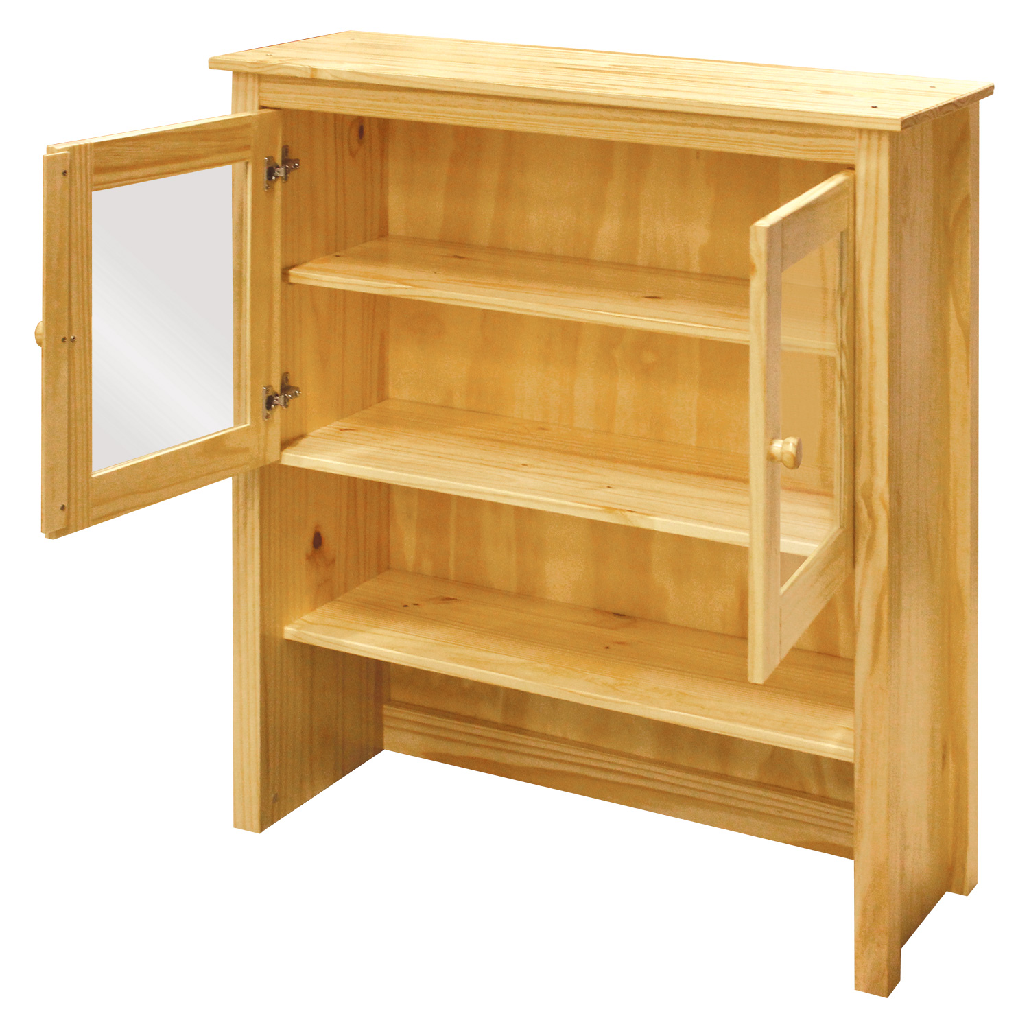materiál masiv borovice, lakované provedení dvoje částečně prosklené dveře, čtyři police