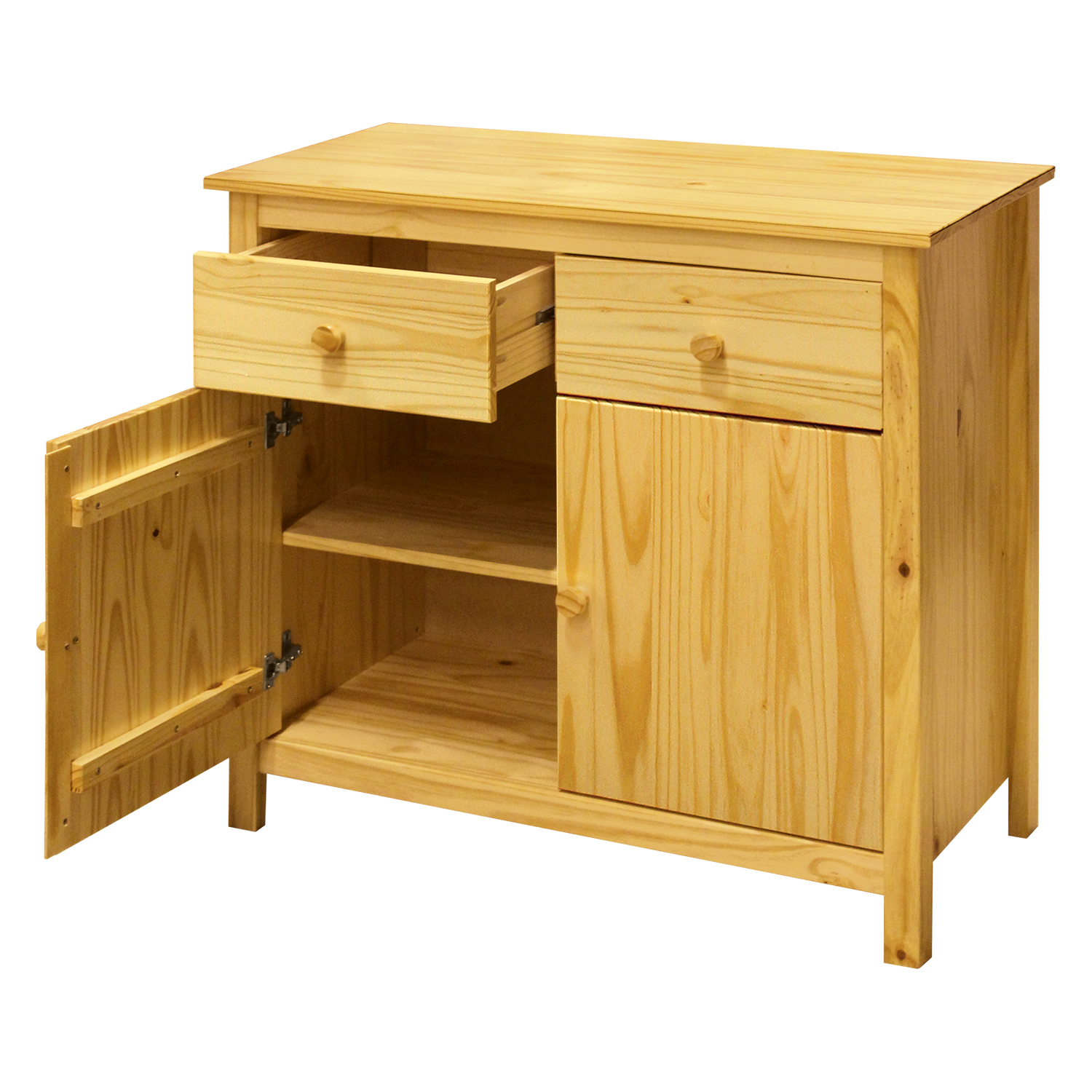 materiál masiv borovice, lakované provedení 2 dvířka a 2 zásuvky s kovovými pojezdy