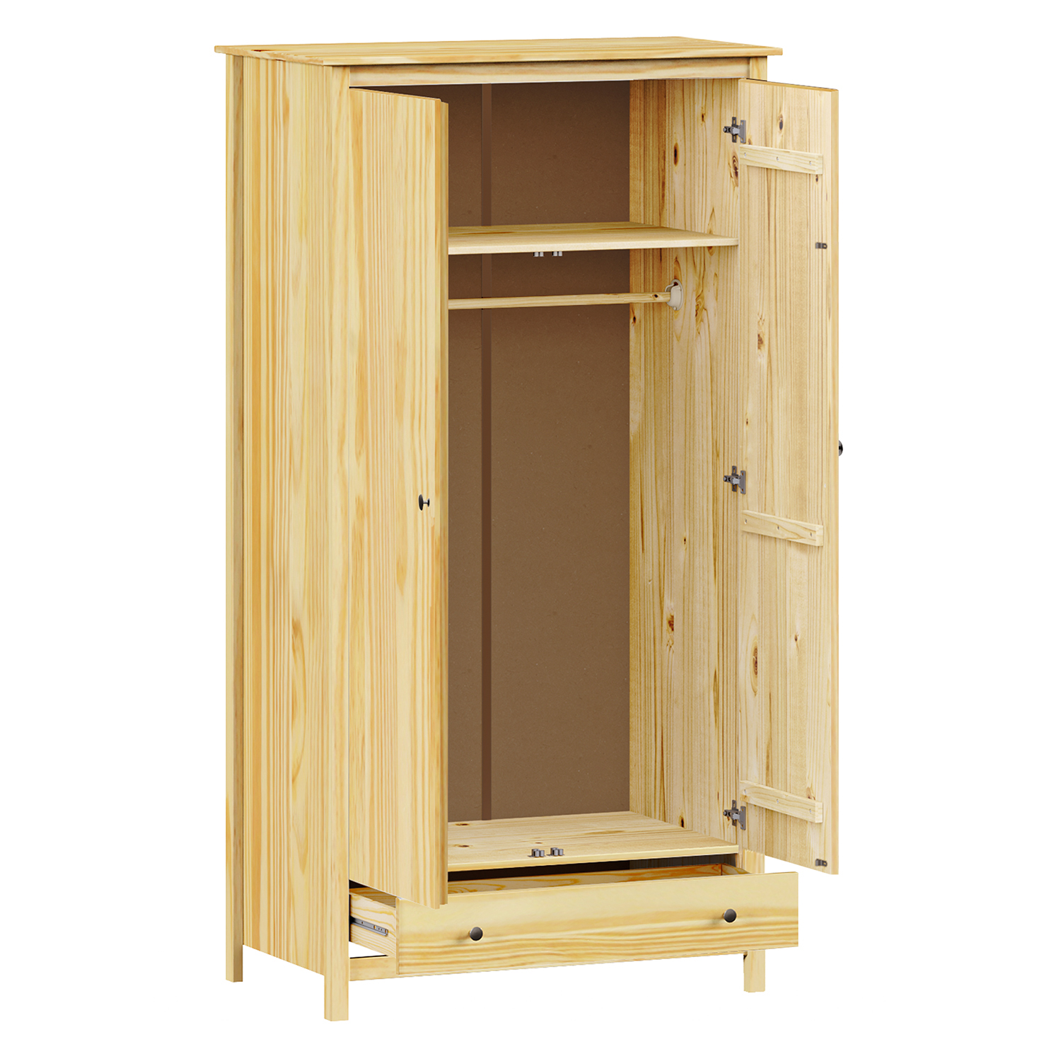 materiál masiv borovice, lakované provedení kovové úchytky v barevném provedení černěná mosaz 3 dvouřadé výklopy
