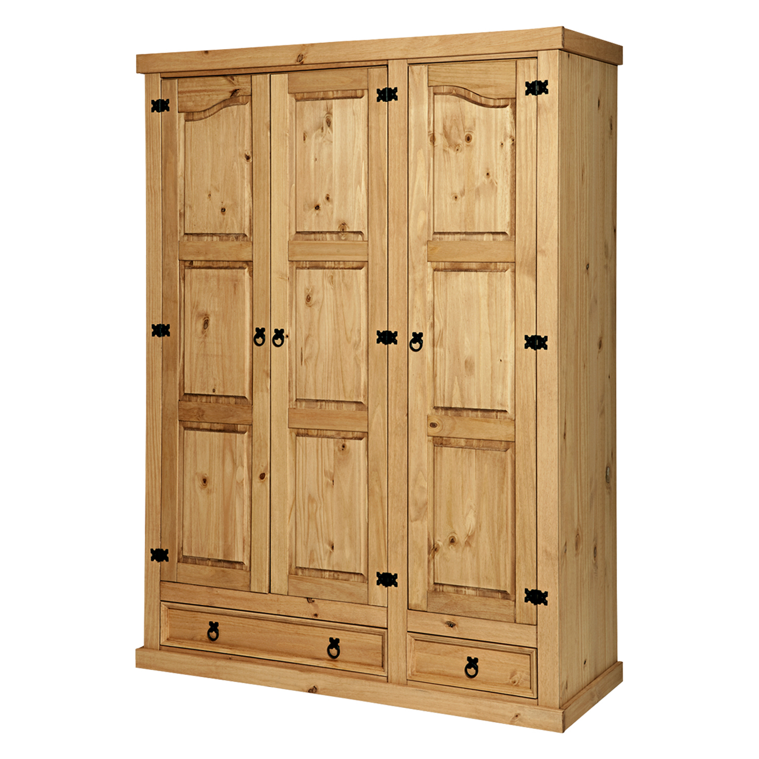 materiál masiv borovice voskovaná v medovém odstínu šatní skříň s šatní tyčí a policí na klobouky kovové ozdobné úchytky součást sestavy Corona