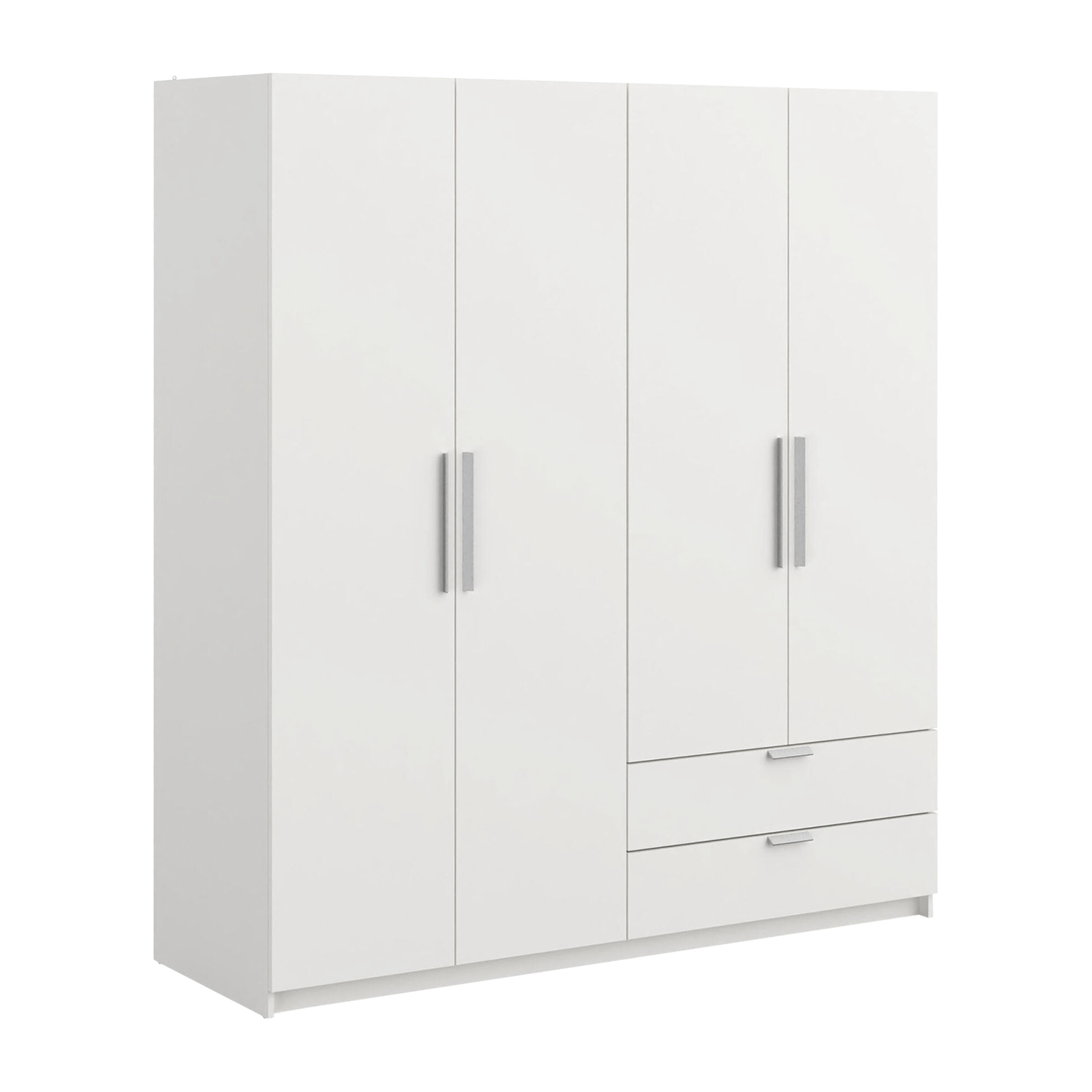 barevné provedení bílá dělená na poloviny, v levé části šatní tyč a police na klobouky v pravé části 3 police a 2 široké zásuvky s kovovými pojezdy maximální nosnosti uvedeny v návodu k montáži