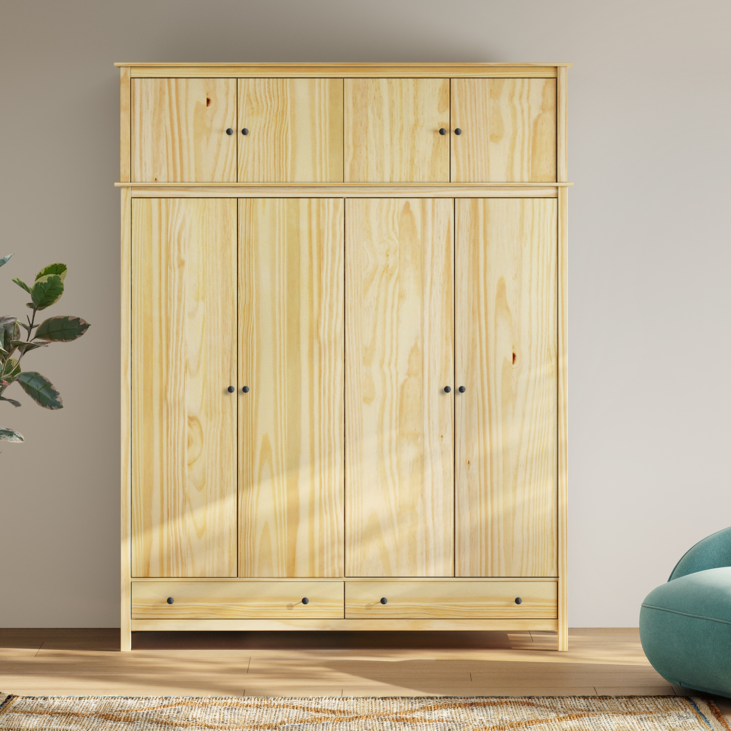 materiál masiv borovice, lakované provedení kovové úchytky v barevném provedení černěná mosaz nástavec pro skříň 8089K