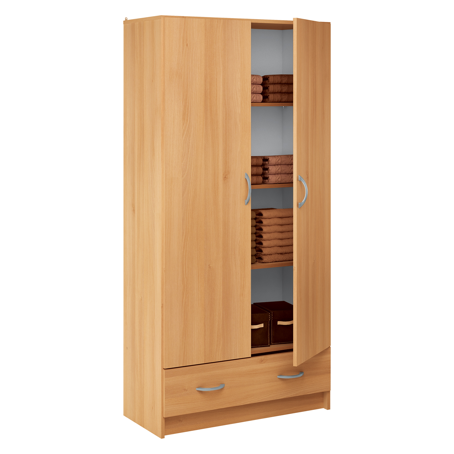 barevné provedení buk polovina šatní skříň s šatní tyčí v druhé polovině 3 police, z toho 2 variabilní rozměr police (š/h) 38 × 40 cm ke skříni je mož...