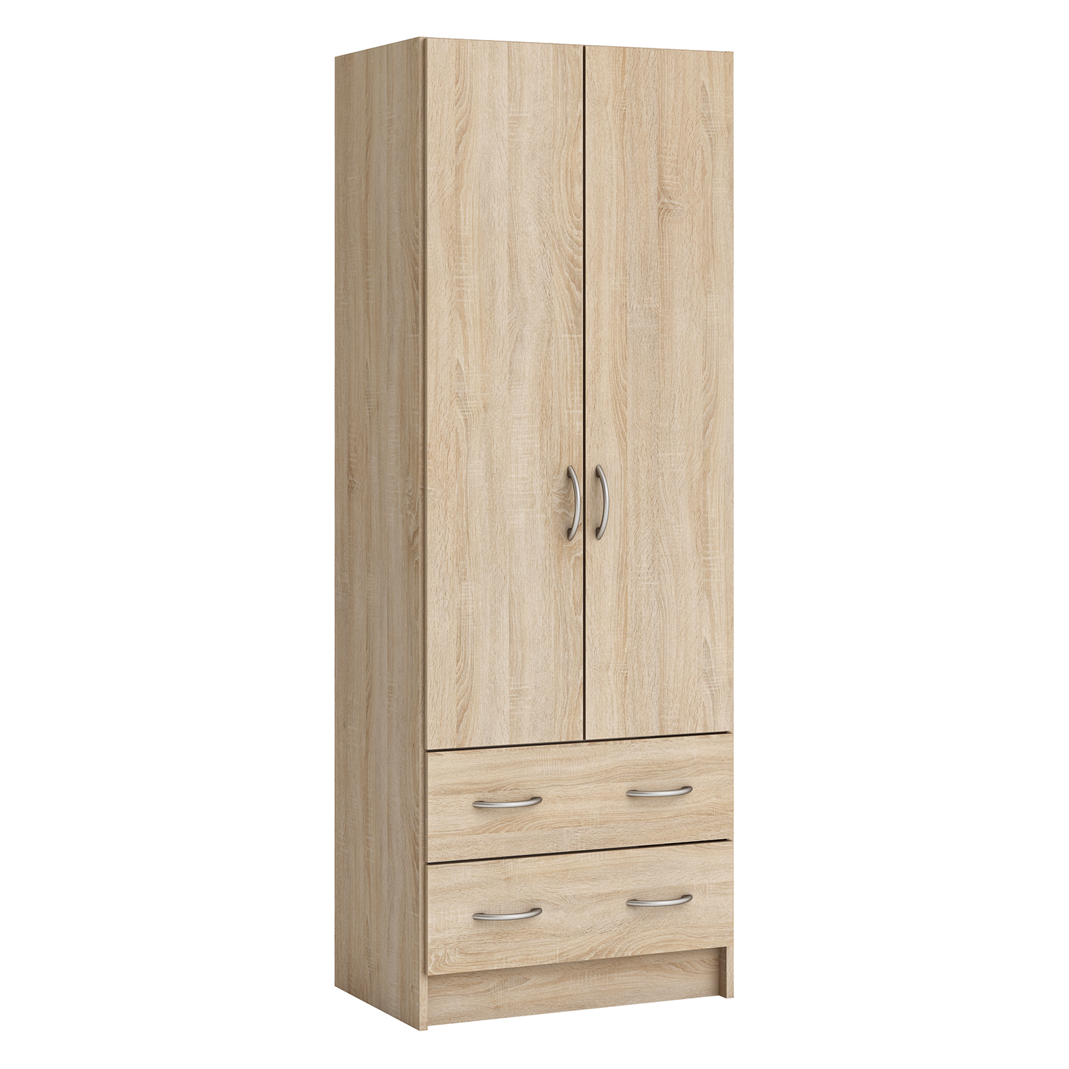 barevné provedení dub Sonoma prostor dělený v poměru 2:1 širší část šatní tyč, užší část 2 variabilní police, 2 zásuvky ke skříni je mo...