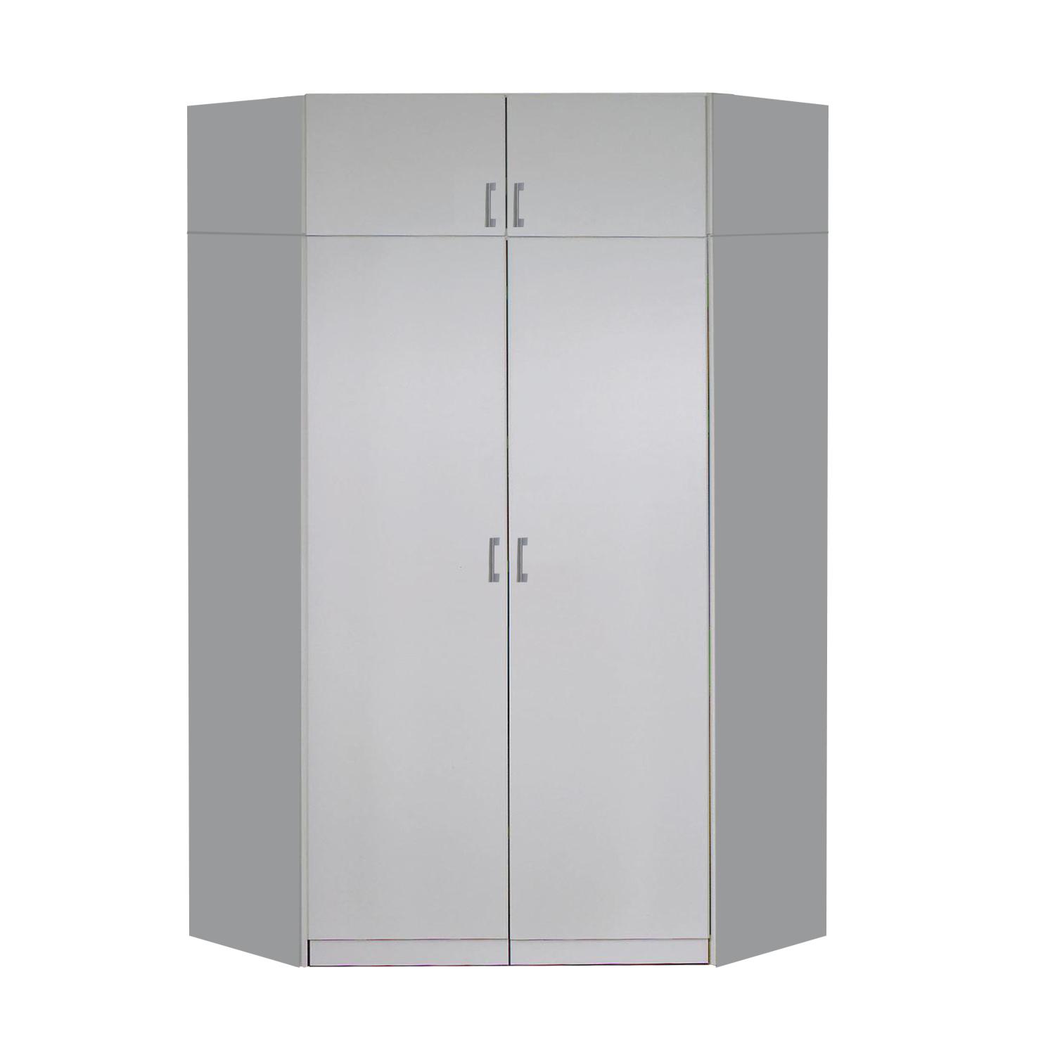 barevné provedení bílá rohová šatní skříň, 9 polic a šatní tyč možno doplnit o nástavec 21555