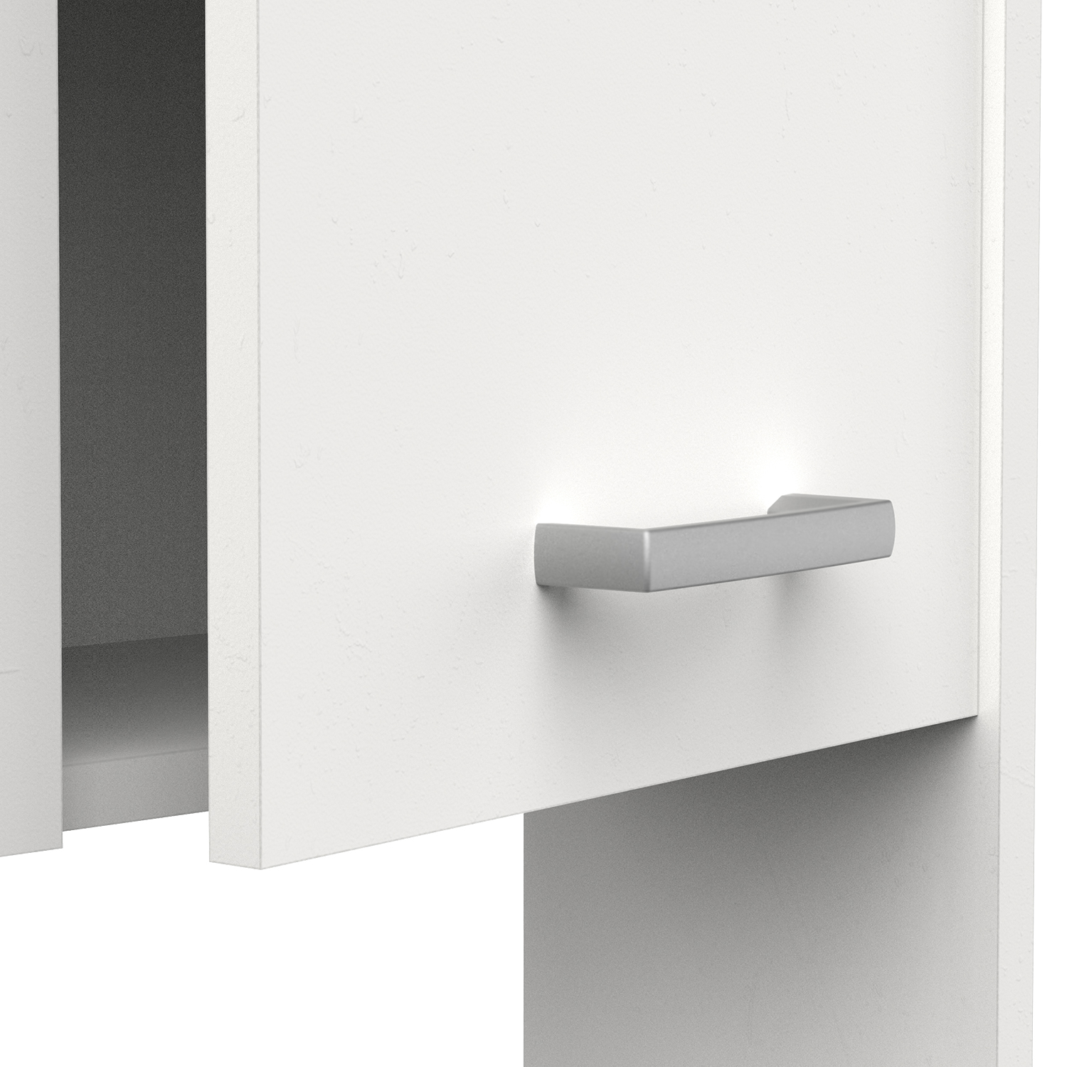 barevné provedení bílá jedna zásuvka s kovovými pojezdy v pravé části dvě skříňky, každá s jednou policí v levé části vysoká skříňka se...