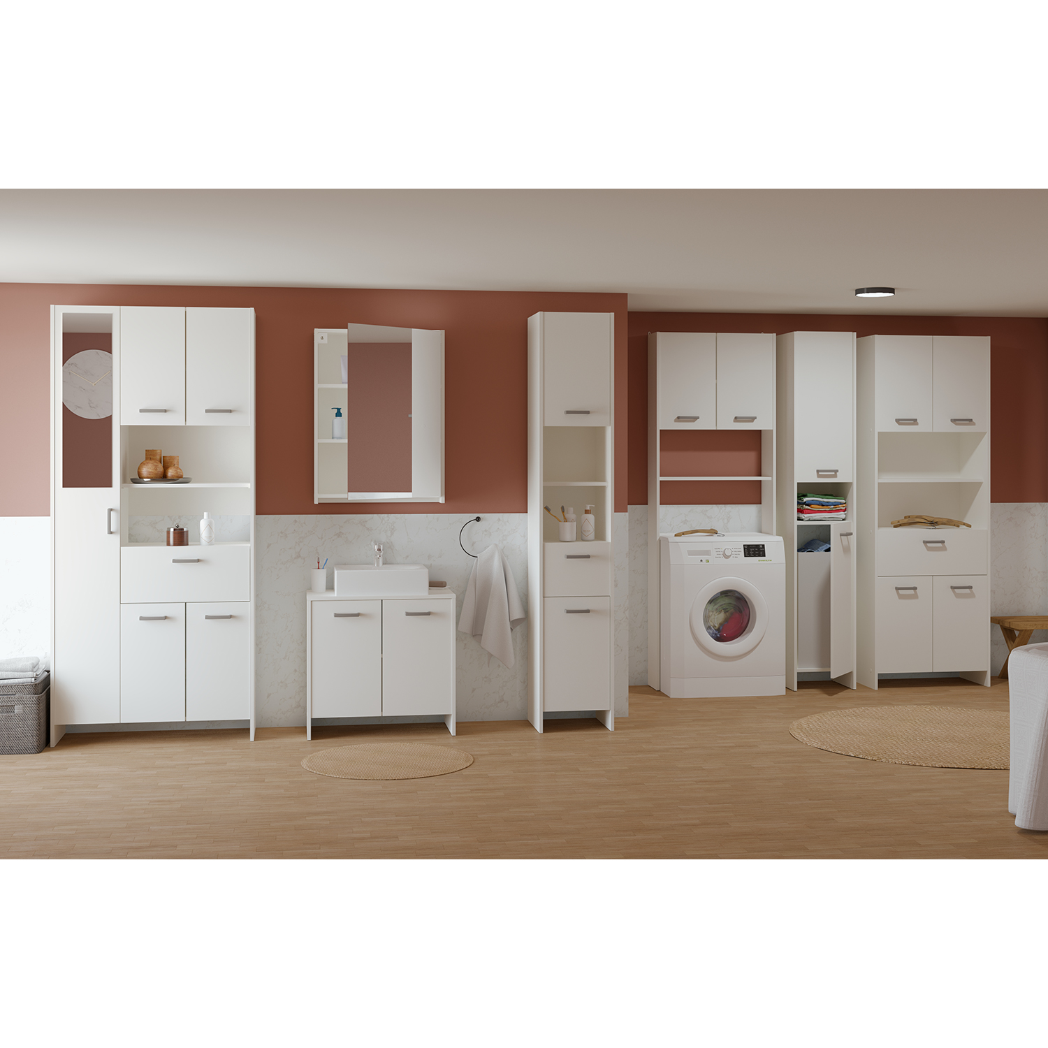 barevné provedení bílá dvoje dvířka, jedna police maximální nosnosti uvedeny v návodu k montáži součást sestavy KORAL