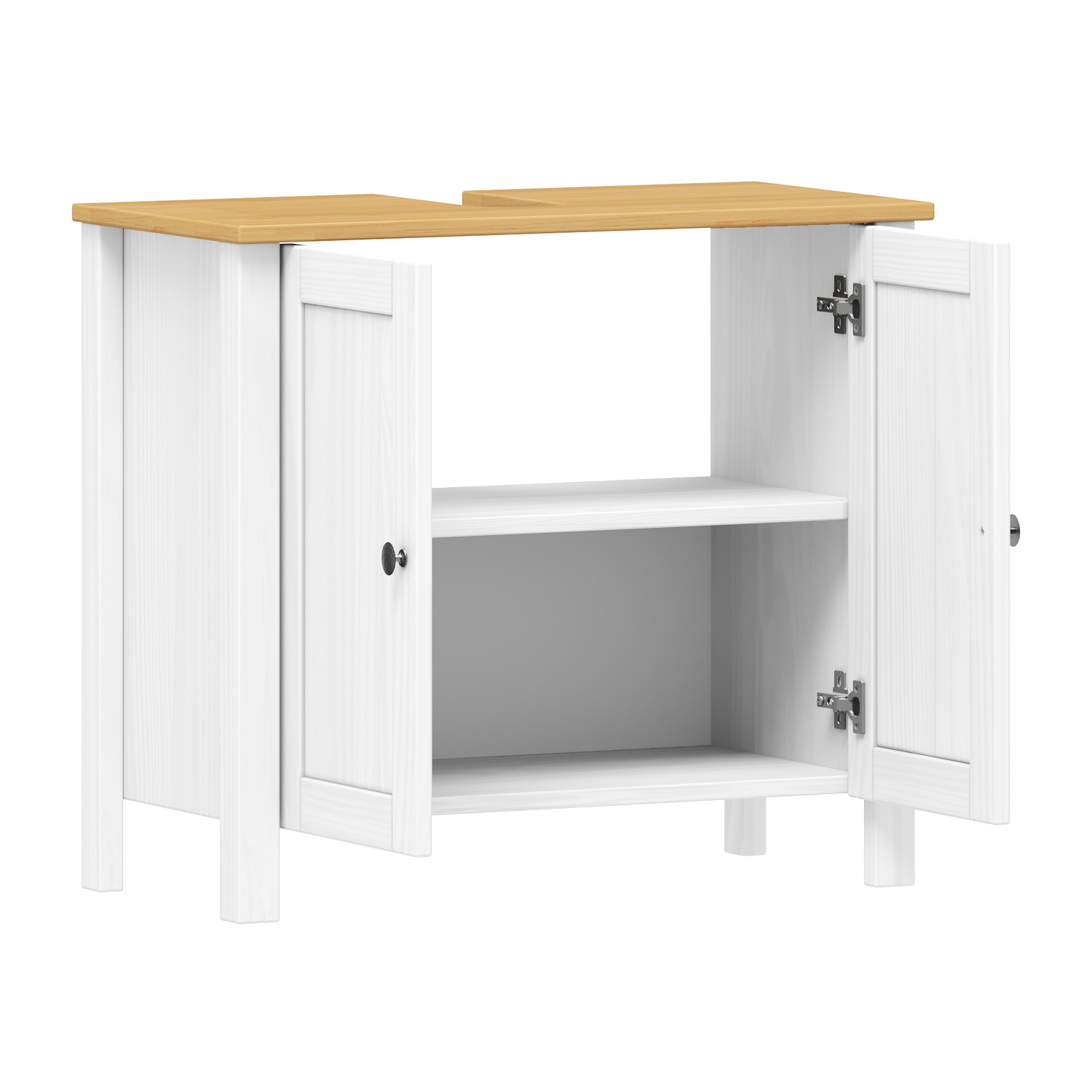 materiál masiv borovice, barevné provedení bílá / buk dvoje dvířka, jedna police maximální nosnosti uvedeny v návodu k montáži součást sestavy PORTO bílá / buk