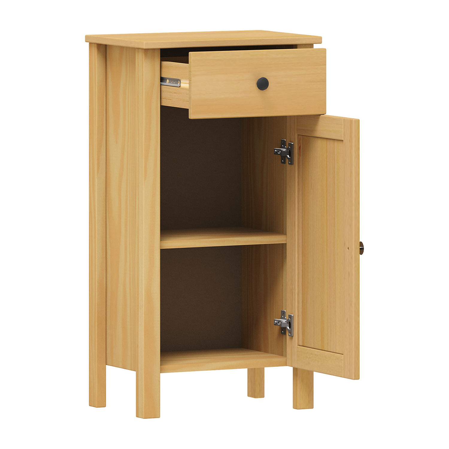 materiál masiv borovice, barevné provedení buk 1 dvířka, za nimi 1 police, 1 zásuvka s kovovými pojezdy maximální nosnosti uvedeny v návodu k montáži součást sestavy PORTO buk