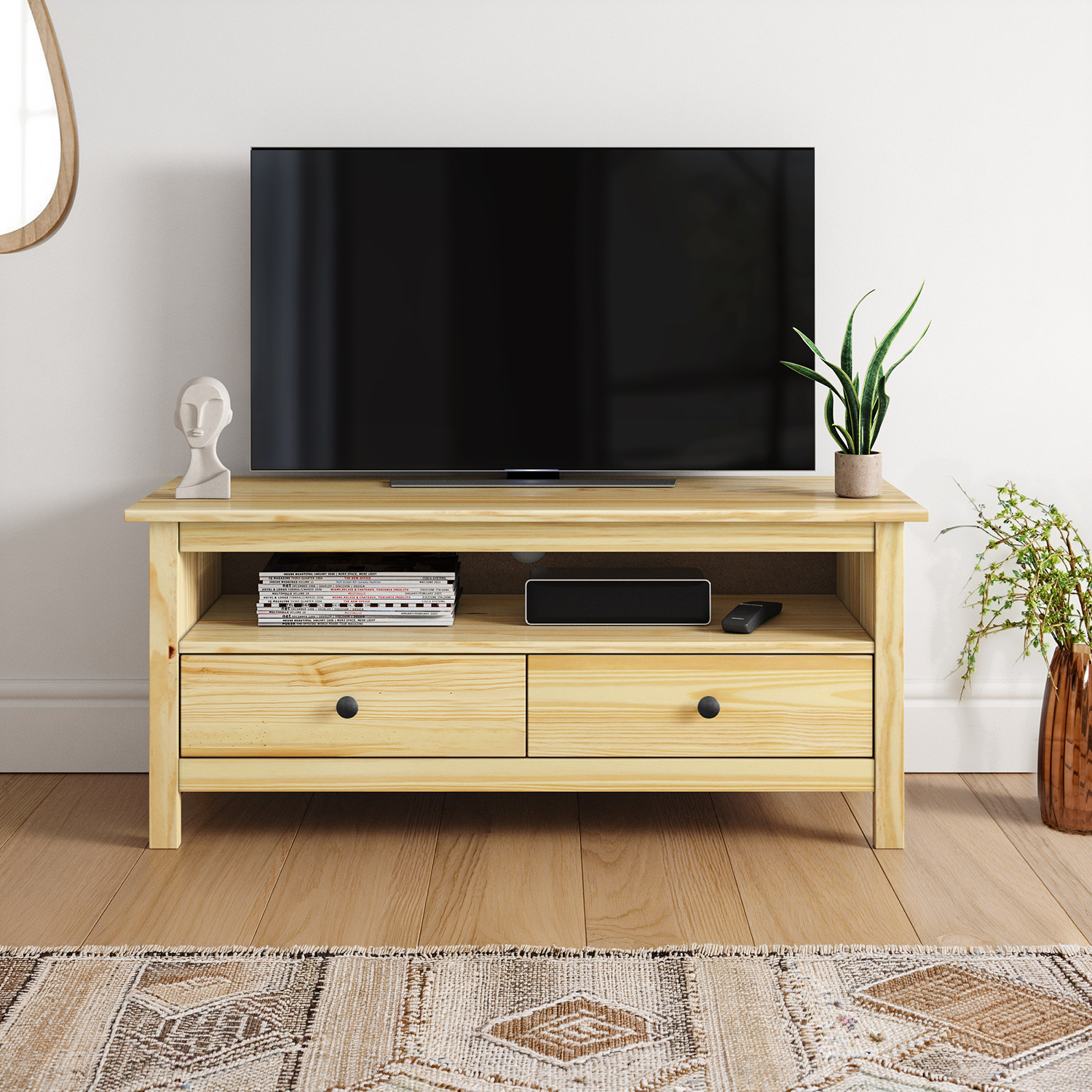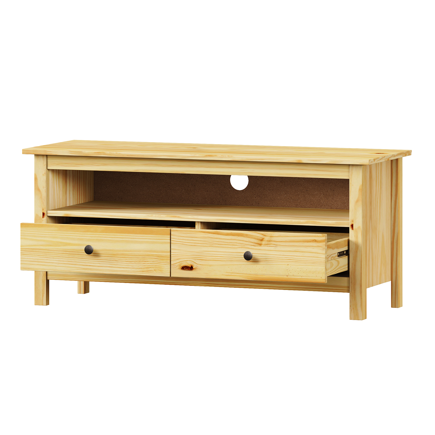 materiál masiv borovice, lakované provedení kovové úchytky v barevném provedení černěná mosaz 2 dvířka a 2 zásuvky s kovovými pojezdy