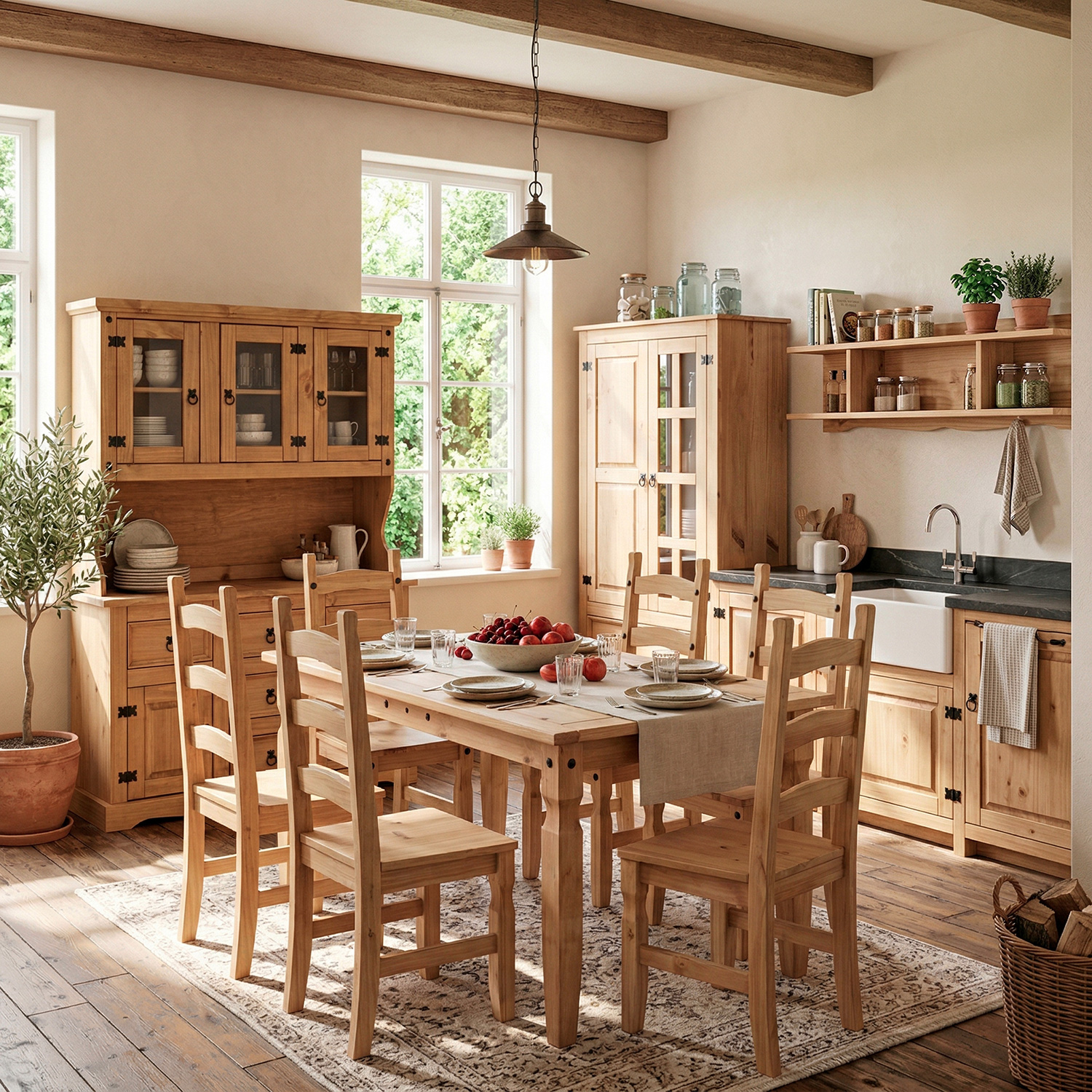 materiál masiv borovice voskovaná v medovém odstínu součást sestavy Corona