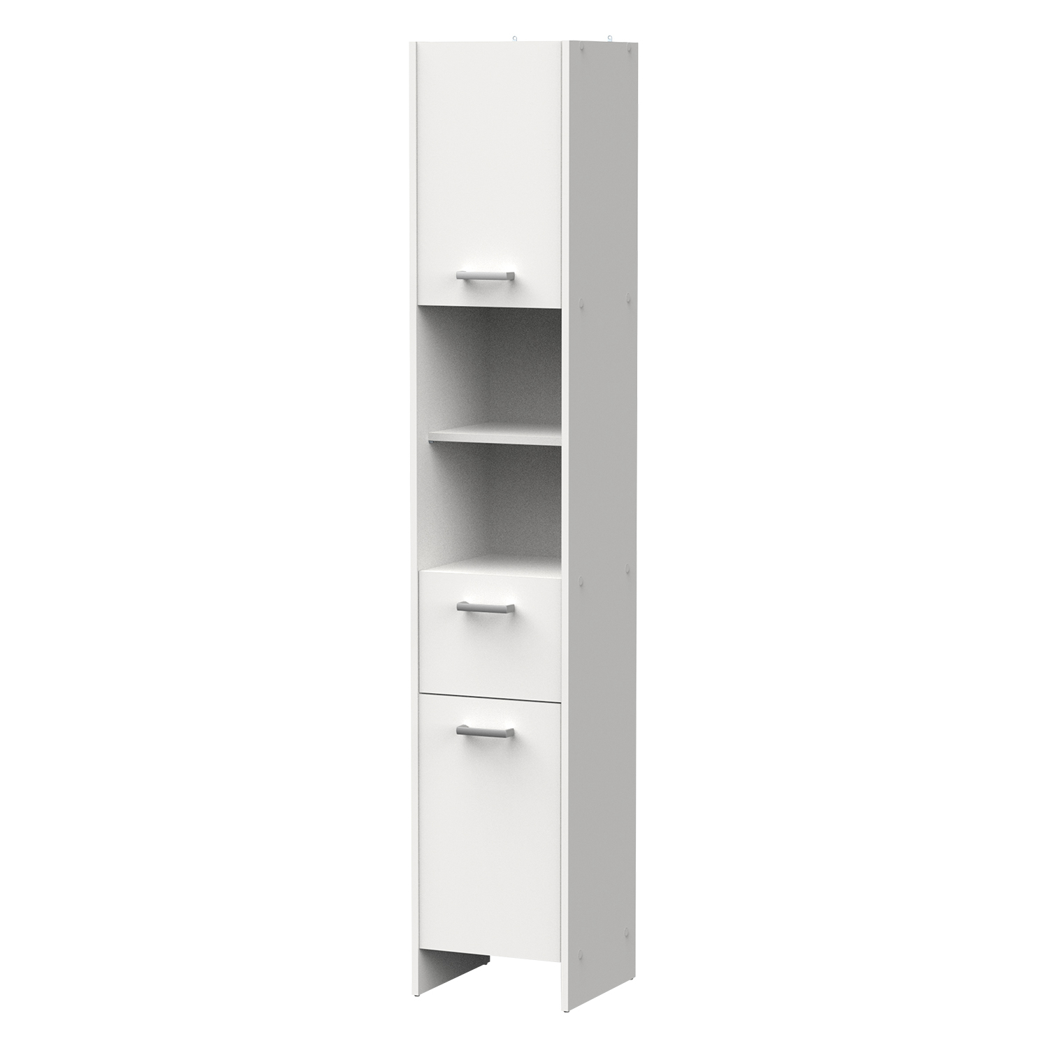 barevné provedení bílá 2 dvířka, za každými 1 police 2 niky, 1 zásuvka s kovovými pojezdy montáž možná na pravou i levou stranu maximální nosnosti uvedeny v návodu k montáži součást sestavy KORAL